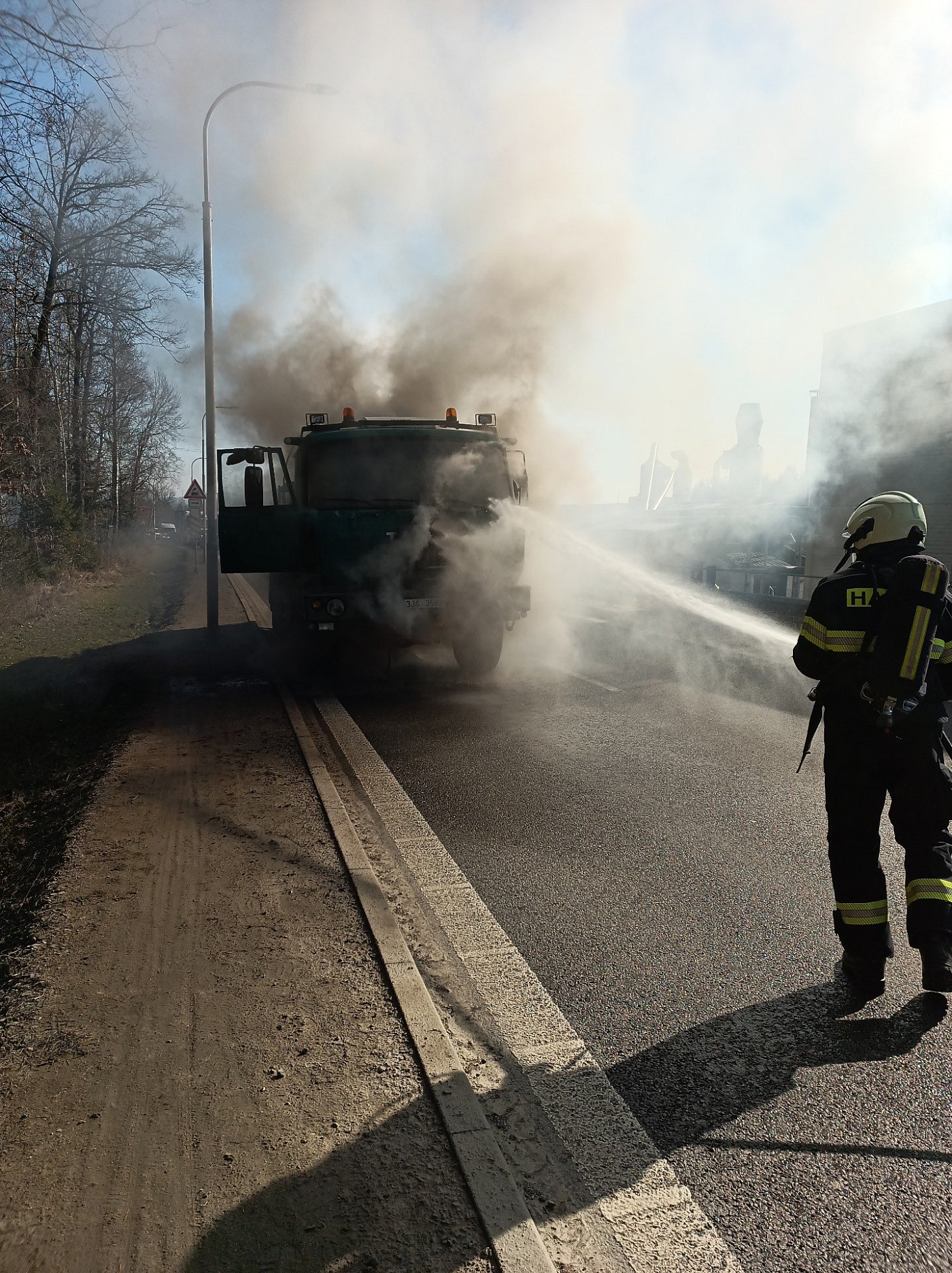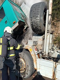 Dnes před 11. hodinou zasahovali hasiči u požáru nákladního automobilu Tatra v obci Střítež, části Kaplice-nádraží. Na místě zasahovala profesionální jednotka z Kaplice a hasiči Správy železnic. Událost se obešla bez zranění. Provoz je v místě řízen kyvadlově.