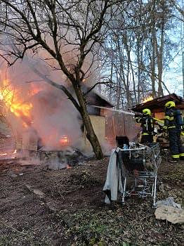 Profesionální hasiči ze stanice Cheb zasahují společně s jednotkami SDH Cheb a HZS Správy železnic Cheb v Klášterní ulici u požáru chaty. V době příjezdu hasičů byla chata požárem zasažena v plněném rozsahu.