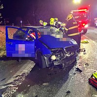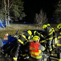 Tři jednotky hasičů zasahovaly u vážné dopravní nehody u Kostelce nad Černými lesy