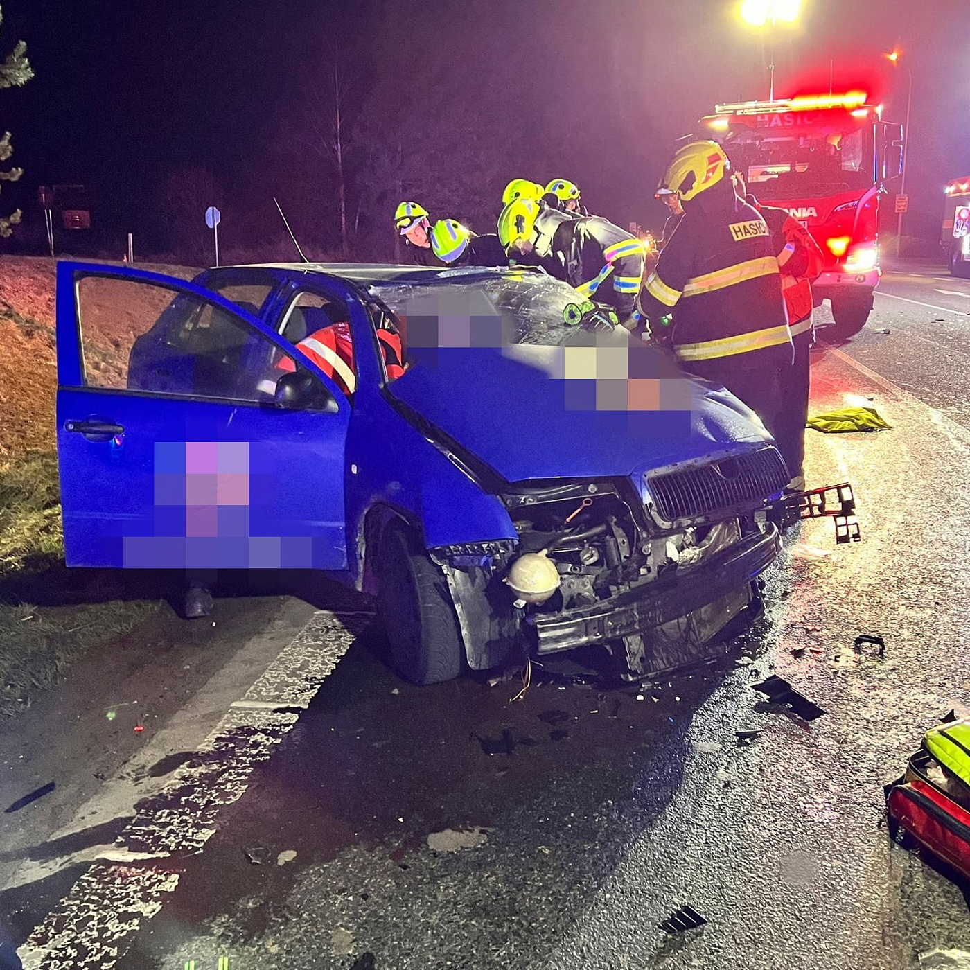 Z jednoho vozidla hasiči řidiče vyprostili pomocí hydraulického vyprošťovacího zařízení. Zdravotnické záchranné službě byly předány dvě osoby, jednu z nich transportoval vrtulník do nemocnice.