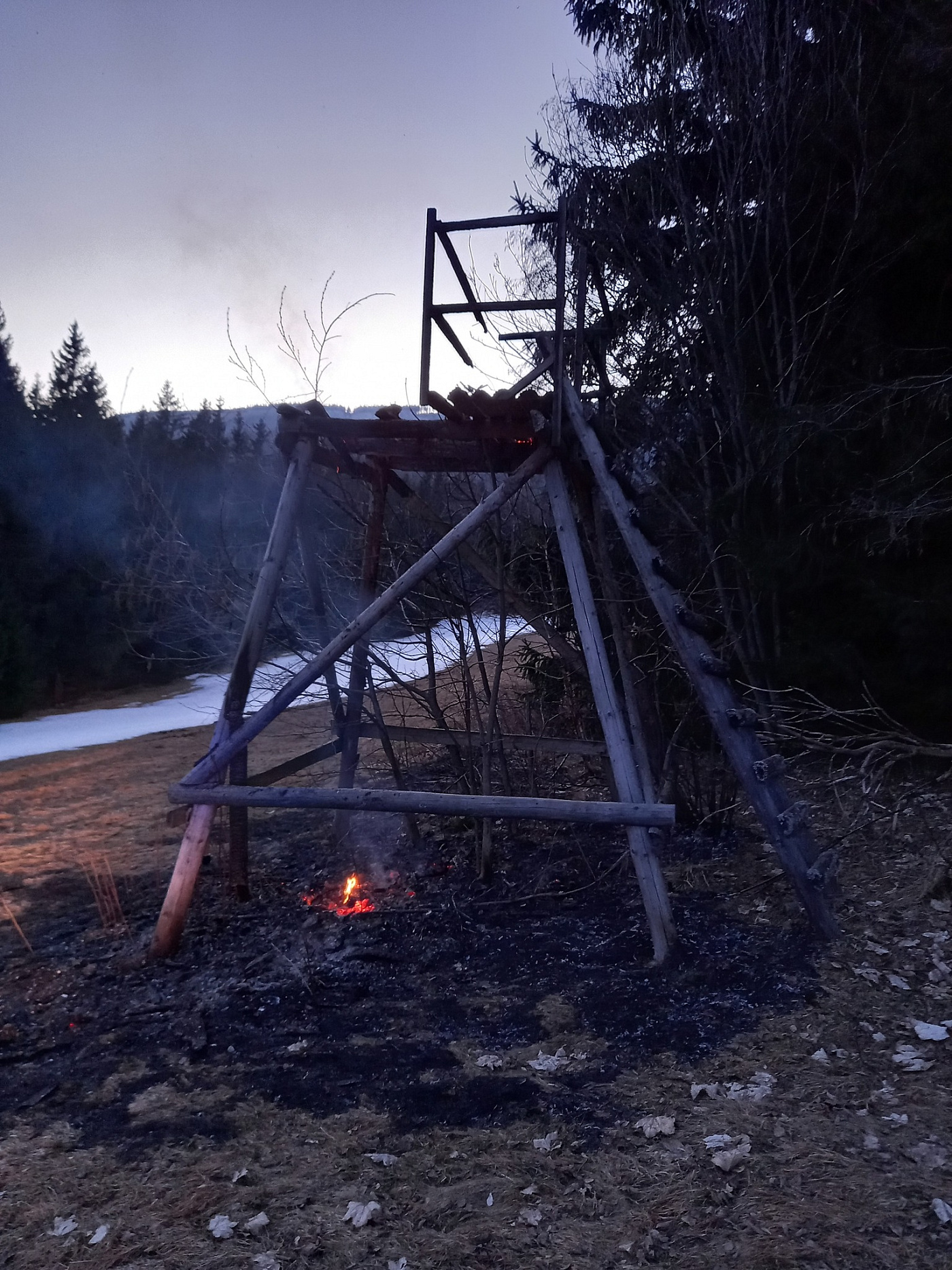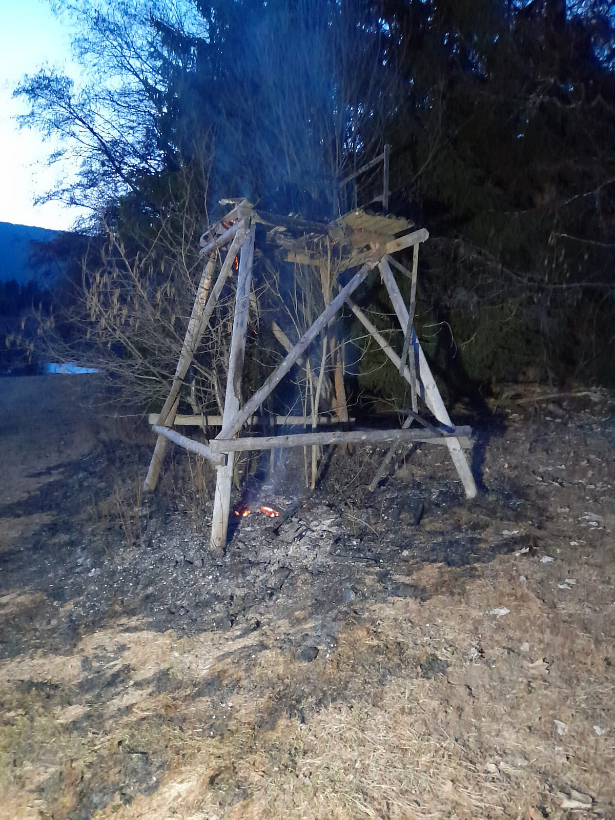 Po zajištění vody provedli dohášení požáru a rozhrabání okolní hrabanky. Na místě spolupracovali také správci KRNAP. Poškozený posed strhli na zem a konstrukci rozebrali, aby bylo možné důkladně prolít požářiště i okolní půdu a zabránili tak dalšímu šíření. Předběžná škoda byla odhadnuta na 10 tisíc korun, uchráněné hodnoty jsou ve stejné výši. Příčina je předmětem vyšetřování