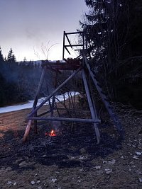 Profesionální hasiči z centrální hasičské stanice Trutnov zasahují spolu s jednotkou SDH obce Horní Maršov u požáru posedu v lese nad Horním Maršovem.