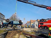 Osobní vozidlo skončilo v Brozanech nad Ohří převrácené na střeše v potoce