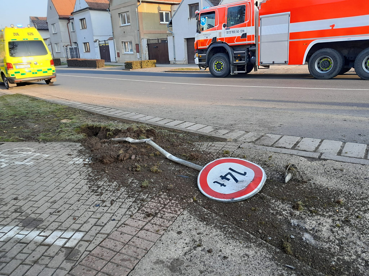 V obci Brozany nad Ohří na Litoměřicku zasahují ve Voborského ulici složky IZS u dopravní nehody osobního vozidla, které skončilo ne nehodě převrácené na střeše v potoce.