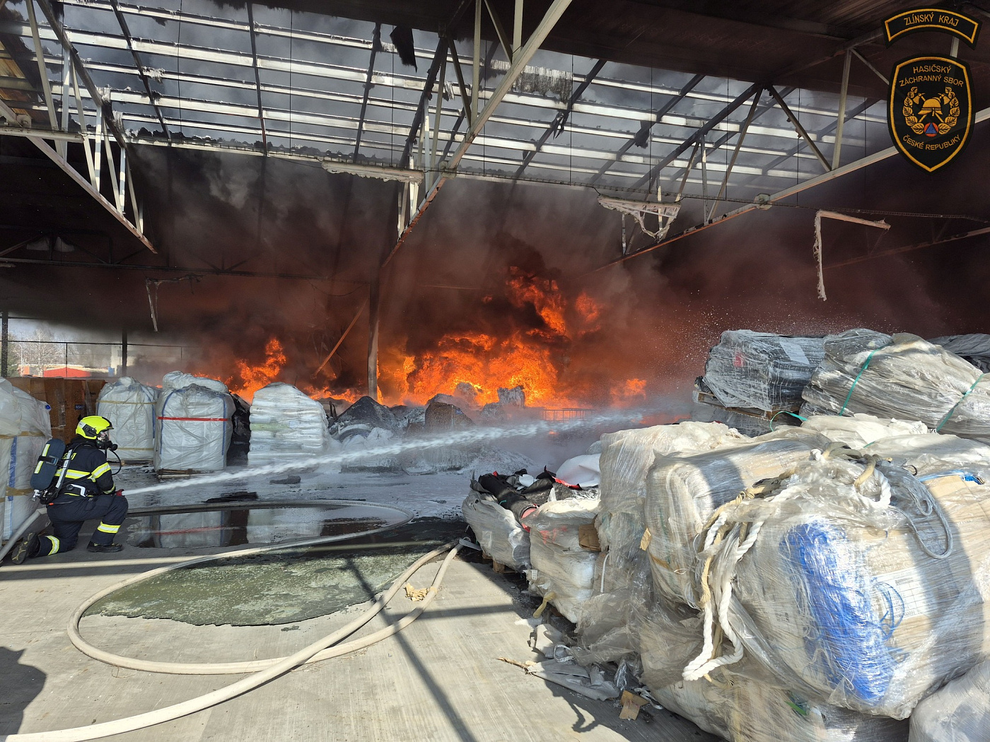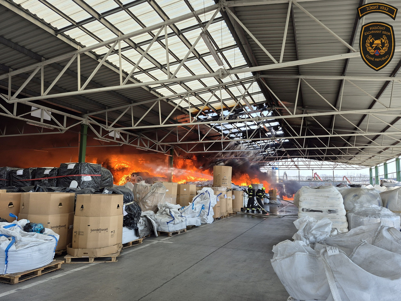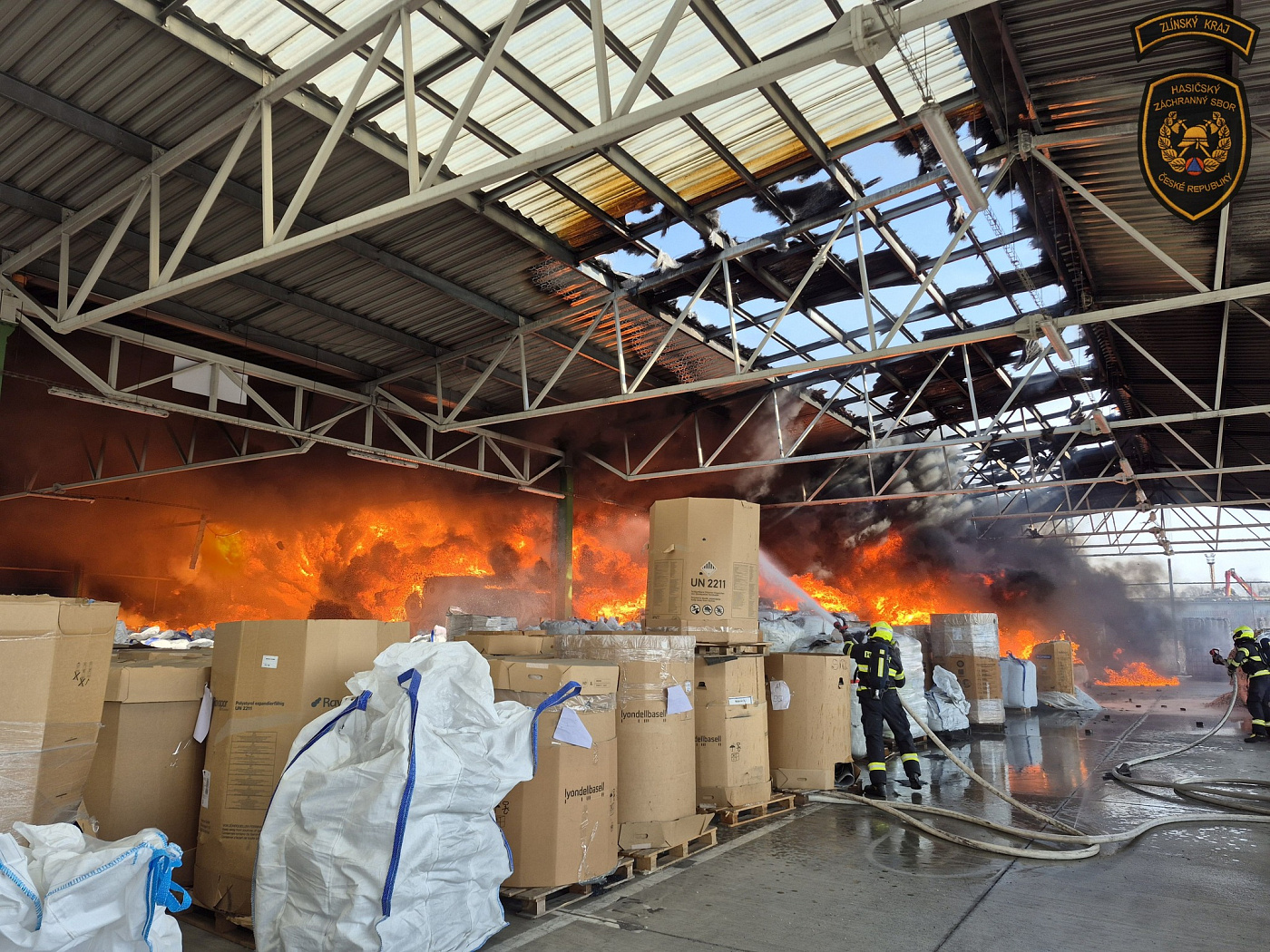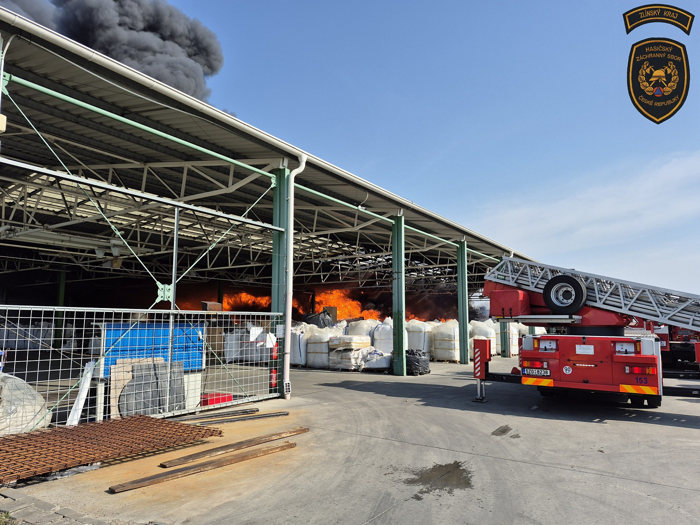 Krátce po desáté hodině dopolední přijalo operační středisko zlínských hasičů oznámení o požáru v areálu společnosti TOMA v Otrokovicích. Plameny zasáhly zastřešený venkovní sklad, ve kterém jsou uskladněny balíky s materiálem zdejší firmy.
