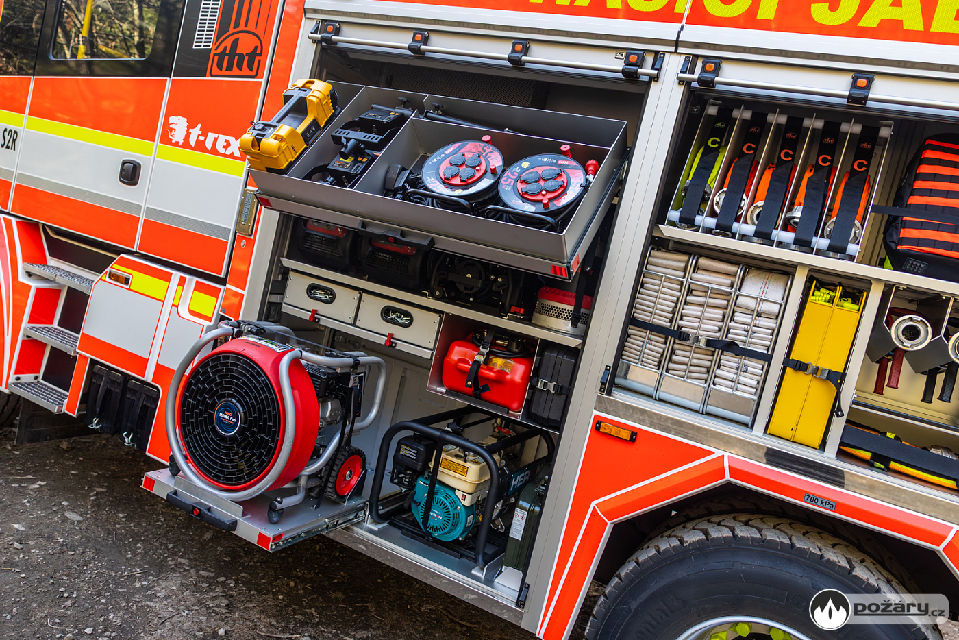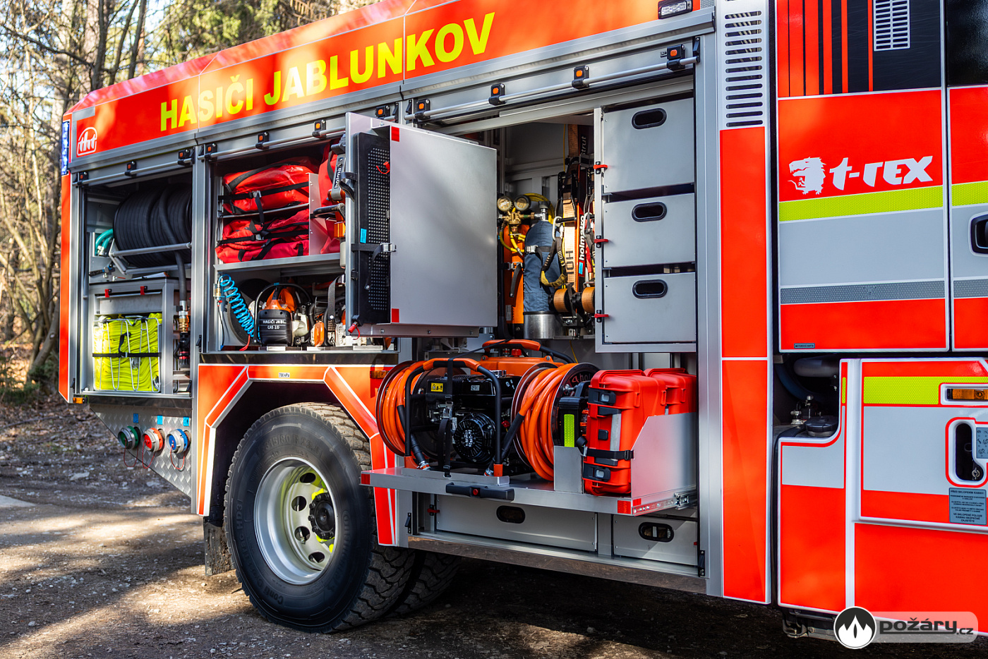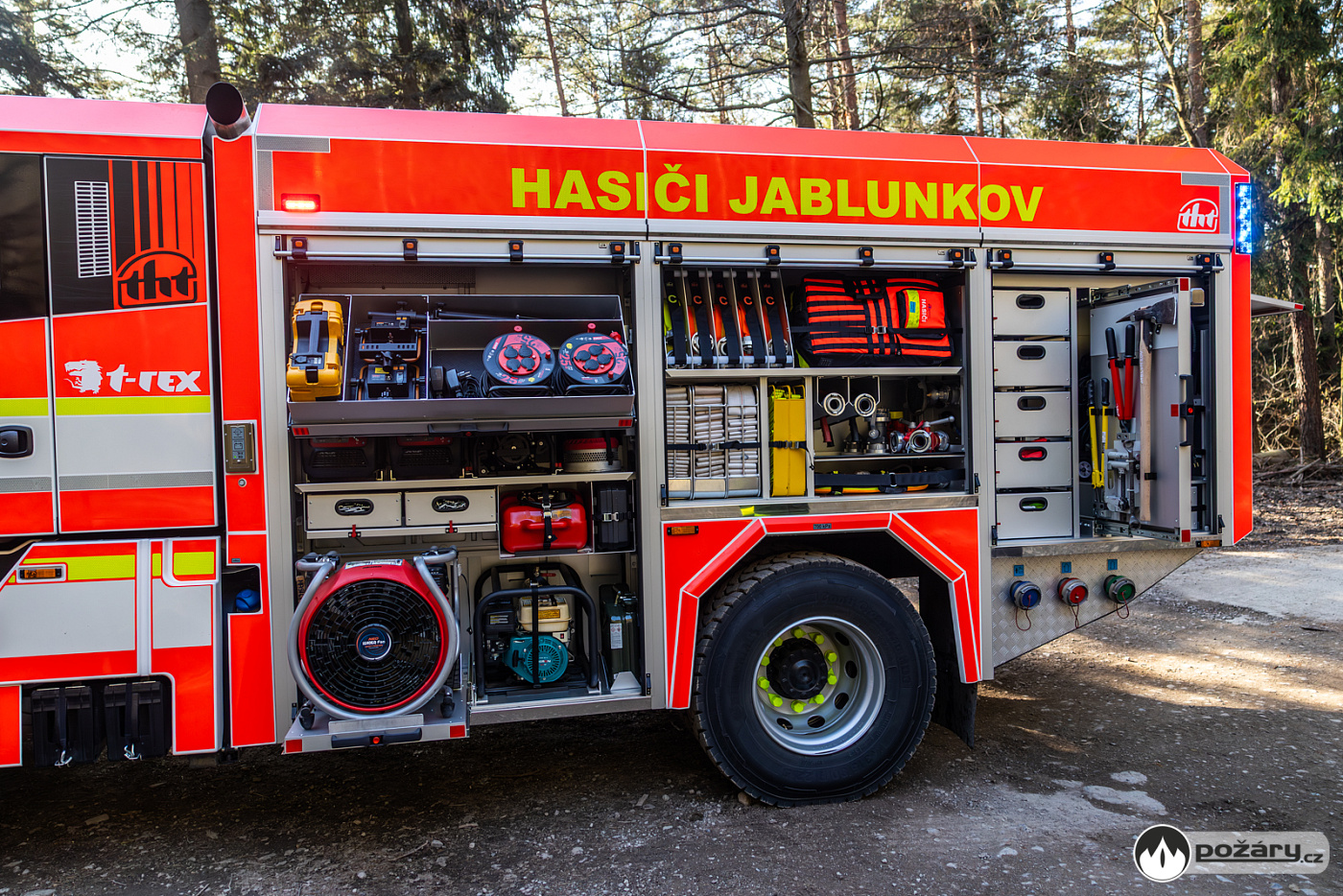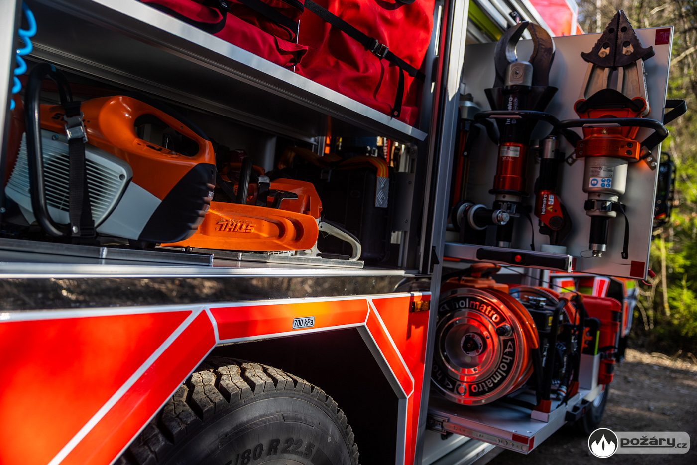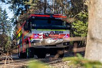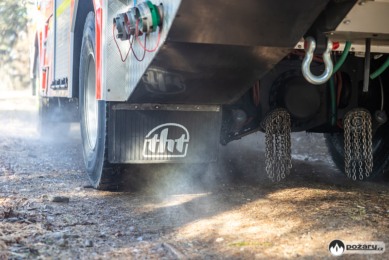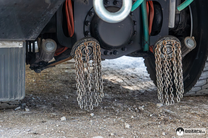 Pro zásahy v náročném terénu nechybí ani podmetací sněhové řetězy, které může řidič aktivovat přímo z kabiny během jízdy. Na předním nárazníku je vůz vybaven lanovým navijákem.