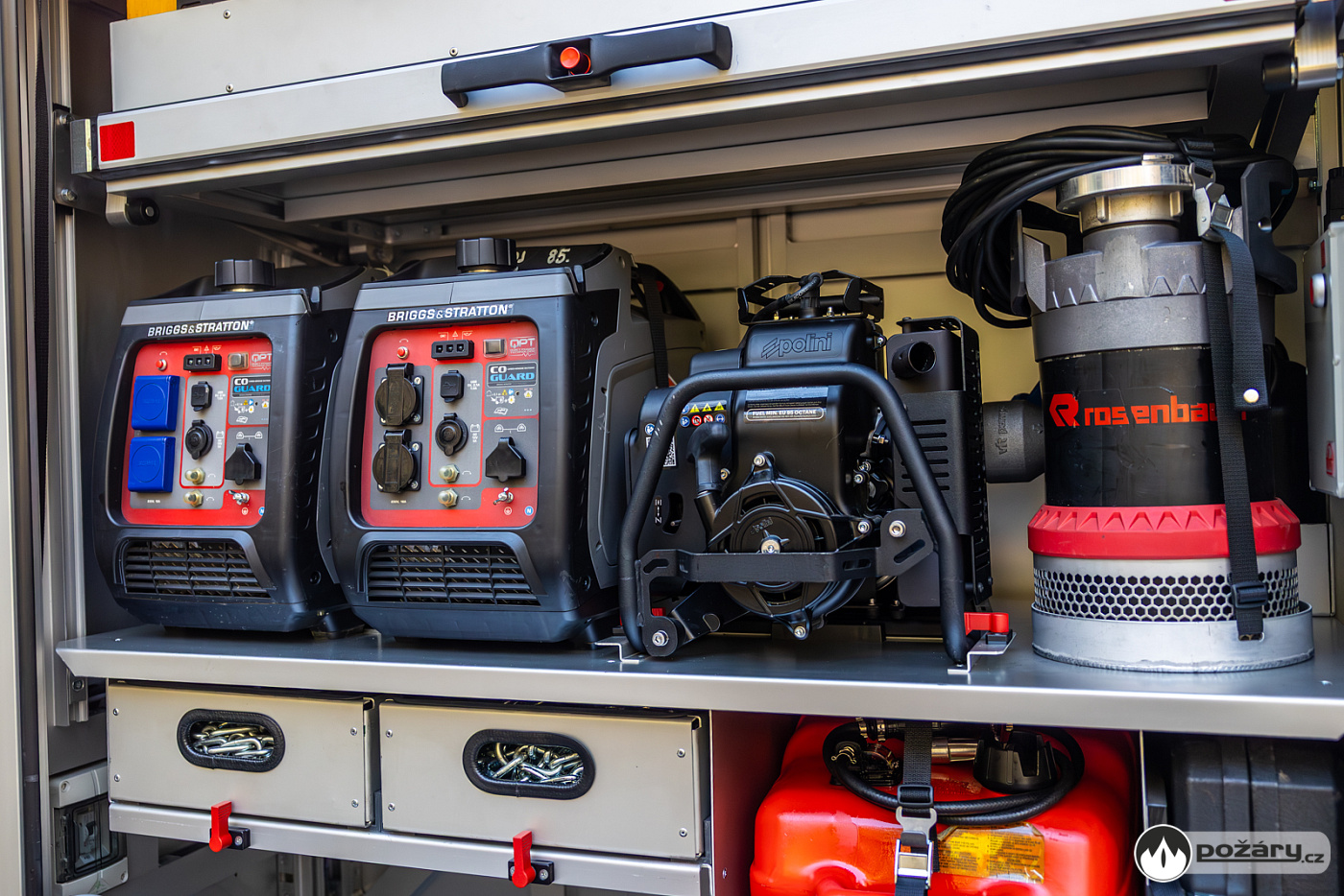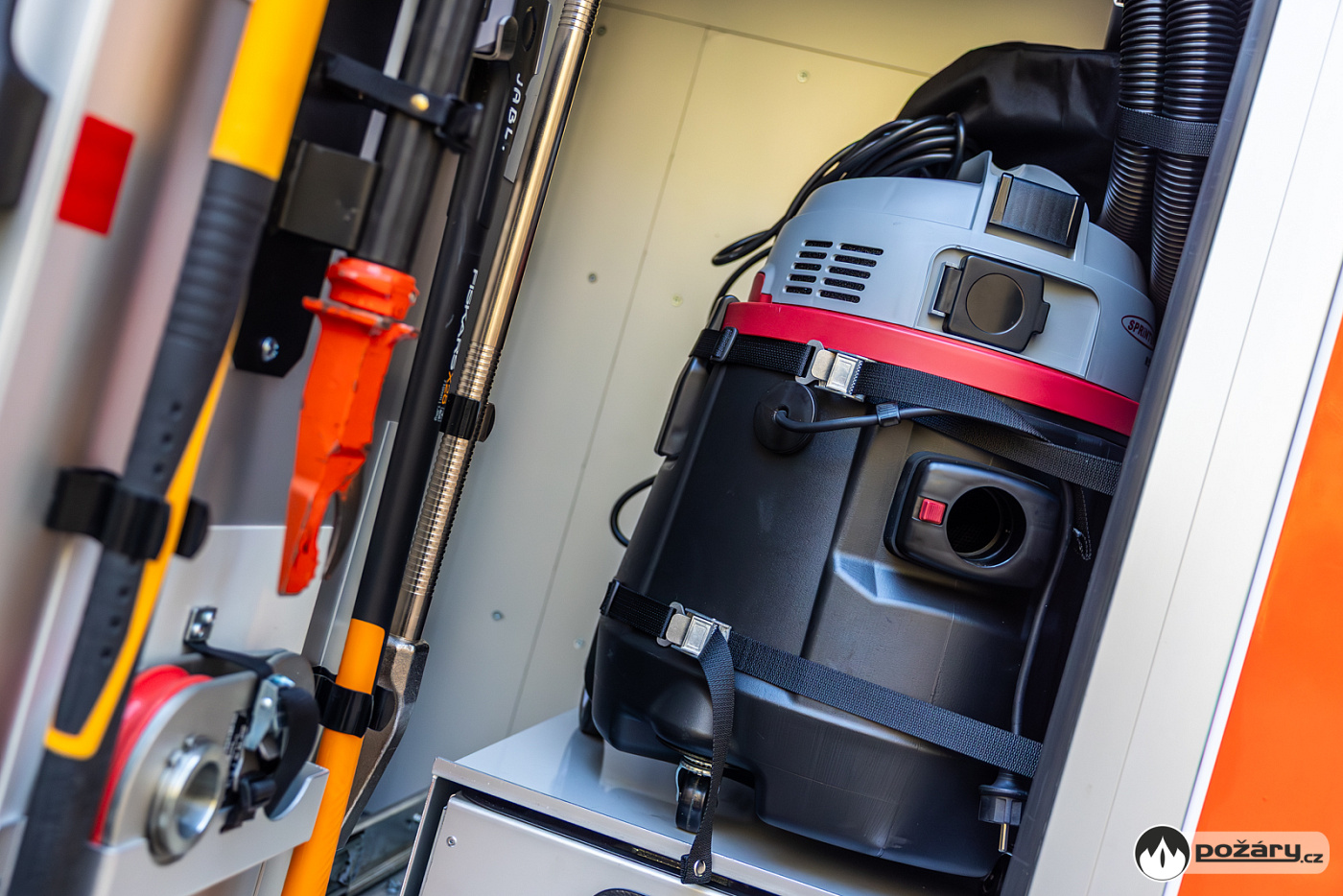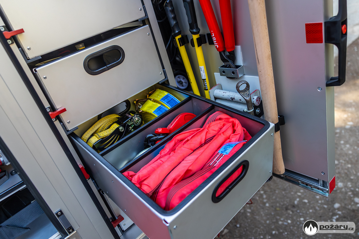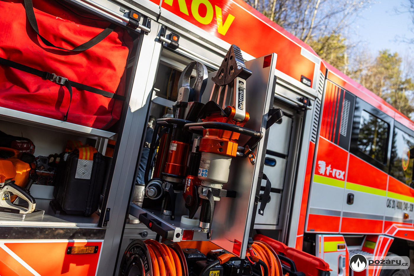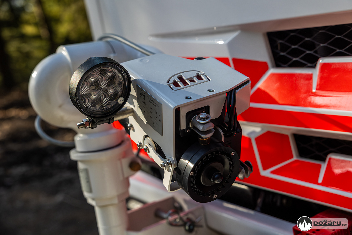Pro zásahy v náročném terénu nechybí ani podmetací sněhové řetězy, které může řidič aktivovat přímo z kabiny během jízdy. Na předním nárazníku je vůz vybaven lanovým navijákem.
