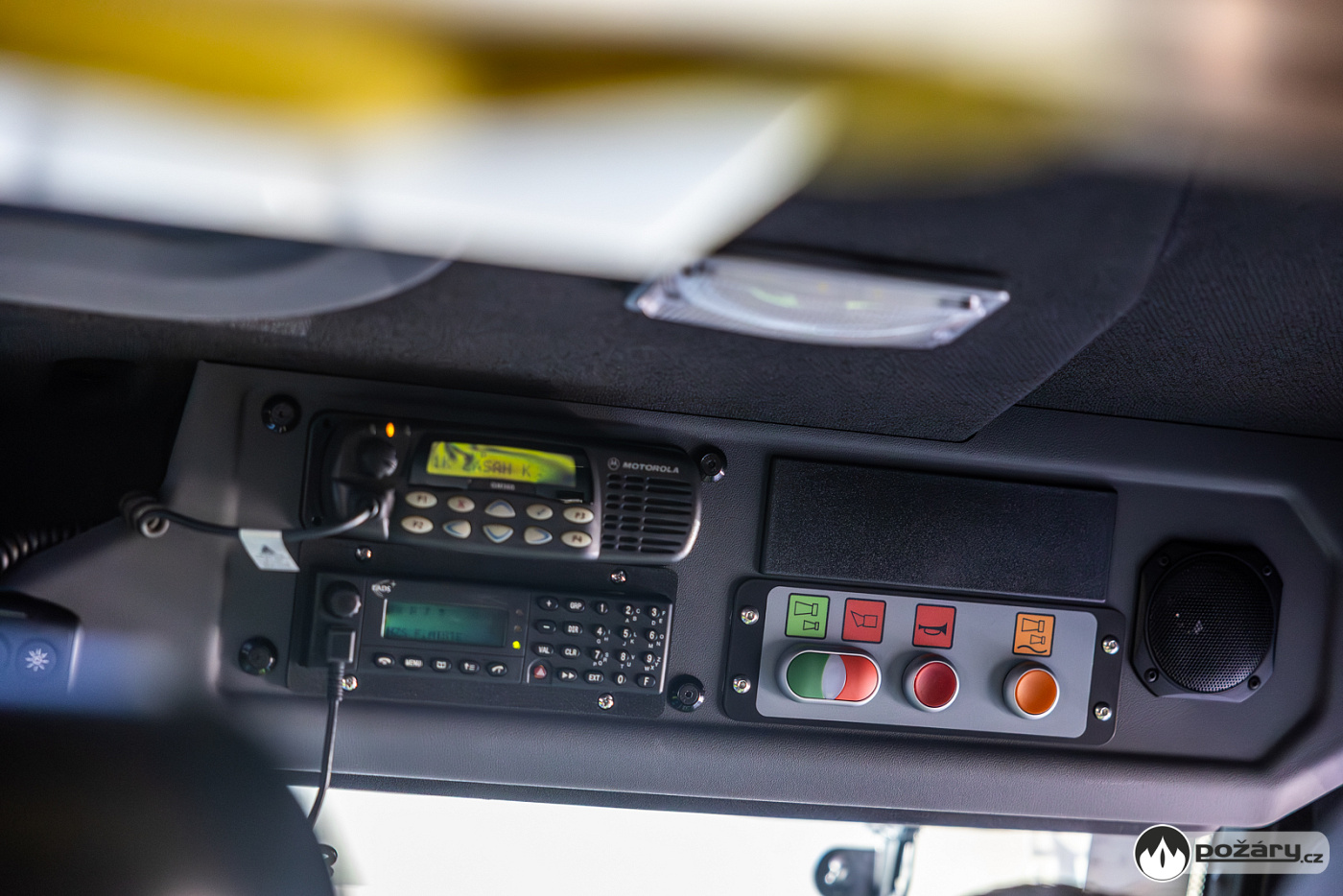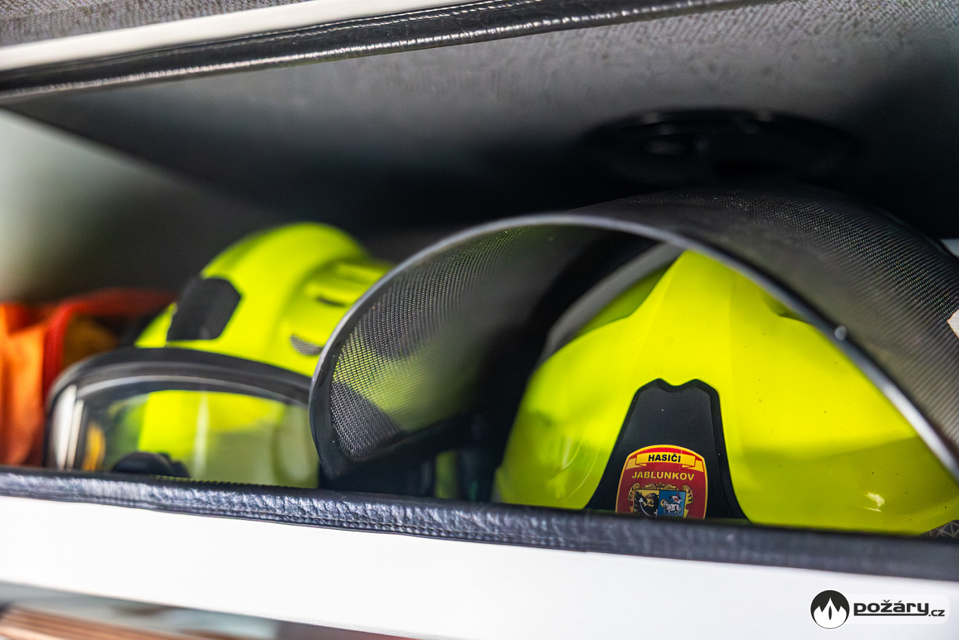 Čtyřdveřová jednoprostorová kabina pojme družstvo v počtu 1+5. V opěradlech zadní řady sedadel jsou integrovány držáky dýchacích přístrojů. Velitel vozu má v dosahu výjezdový tablet, řidič má pak ve svém zorném poli displej s výstupem z couvací kamery.