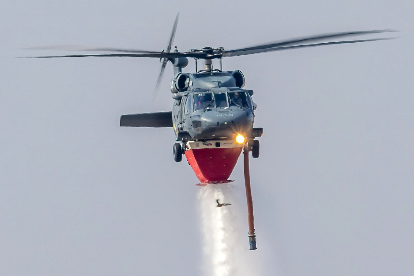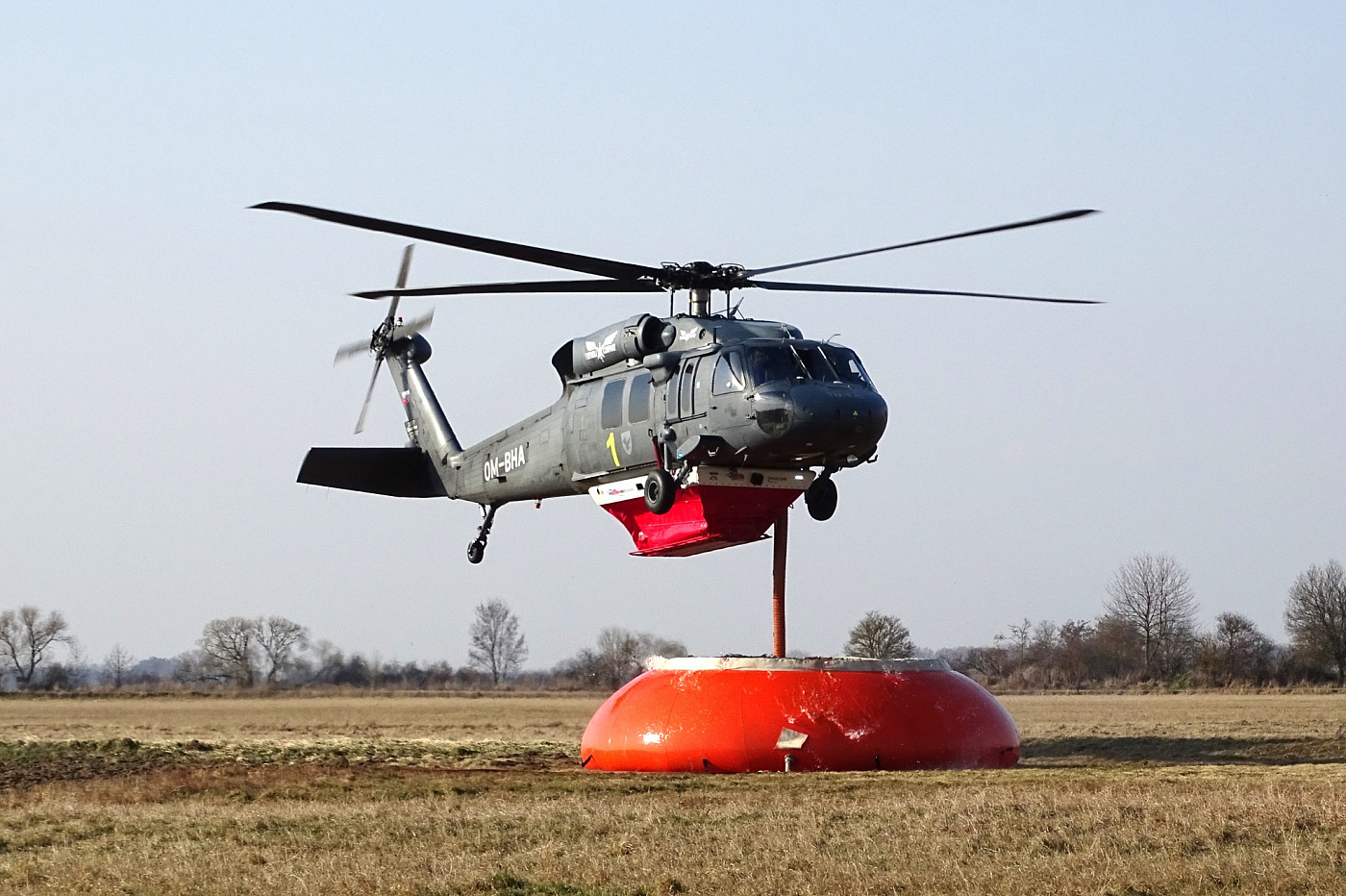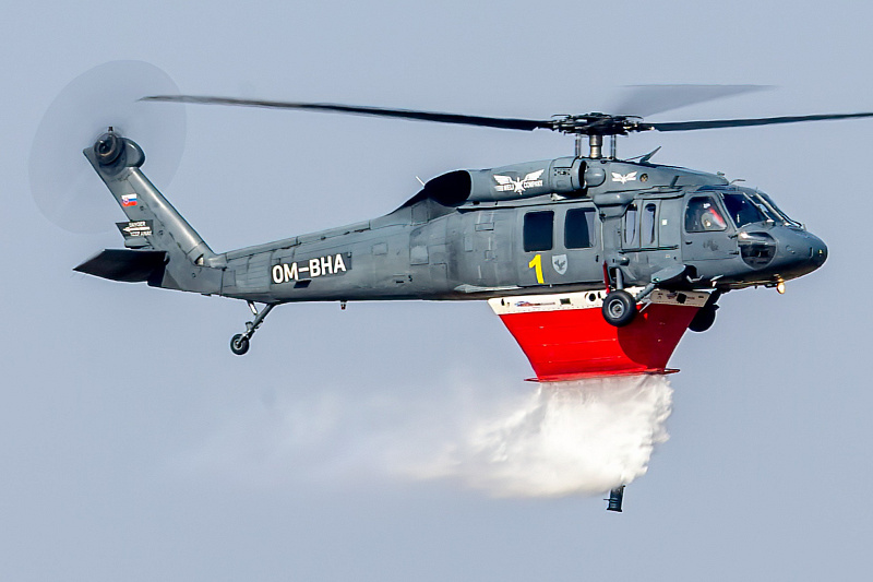 Černí jestřábi cvičili nad přerovským letištěm s bambi vaky a podvěsnou nádrží Helitak