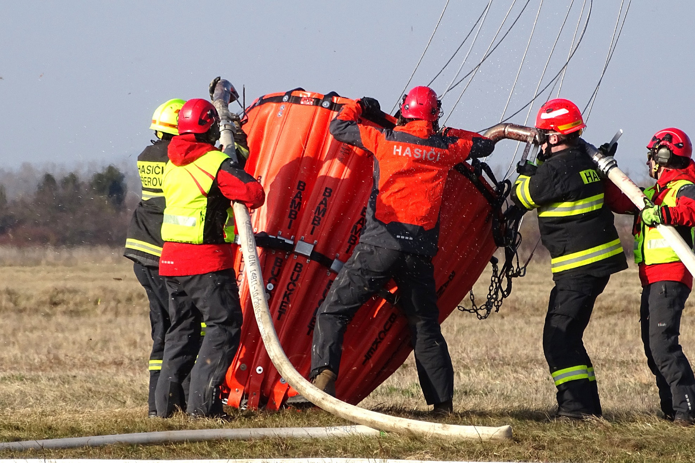 Na výcviku se podílí HZS Olomouckého a Moravskoslezského kraje včetně vojenské hasičské jednotky (VHJ) letiště Přerov.