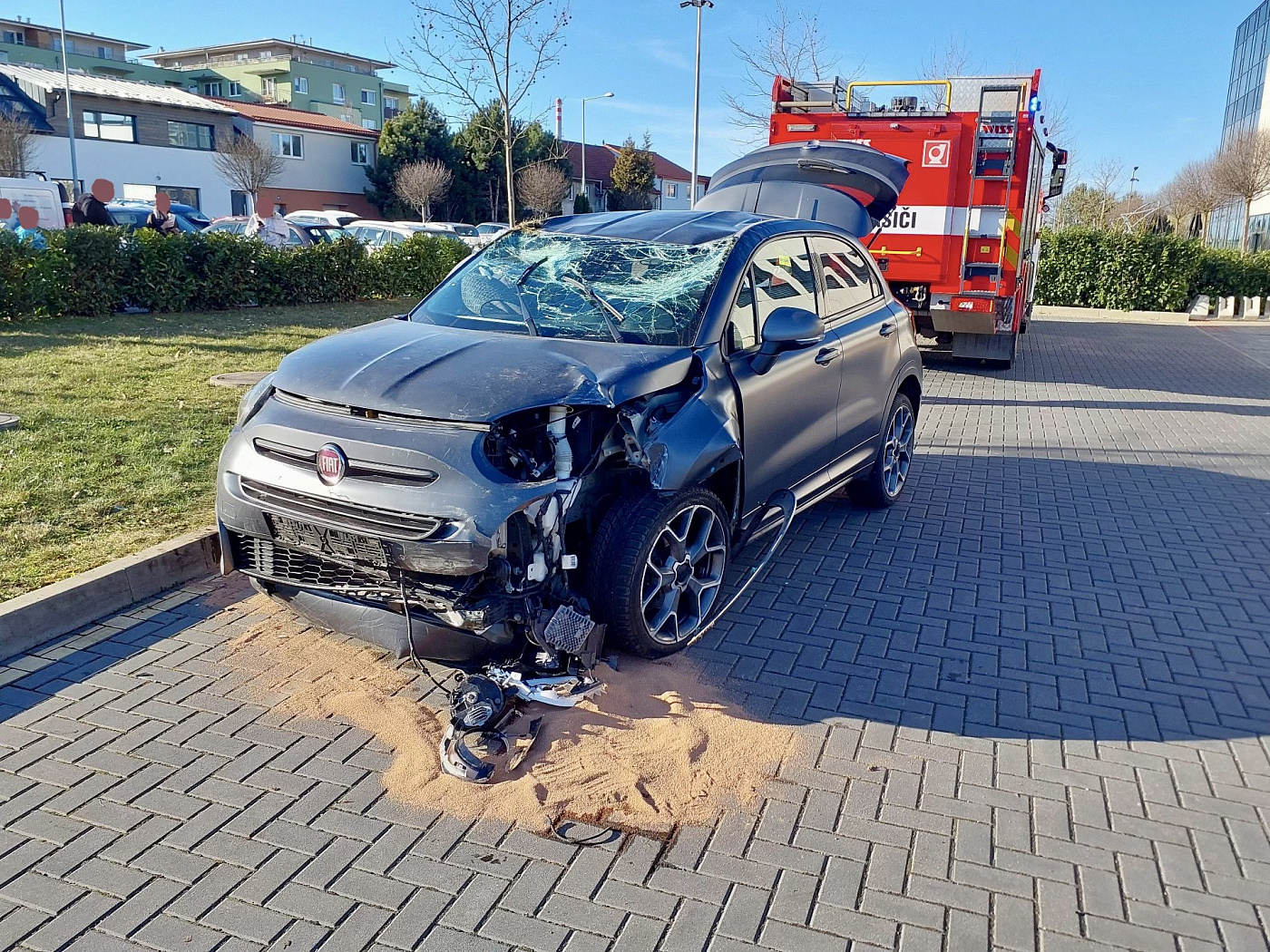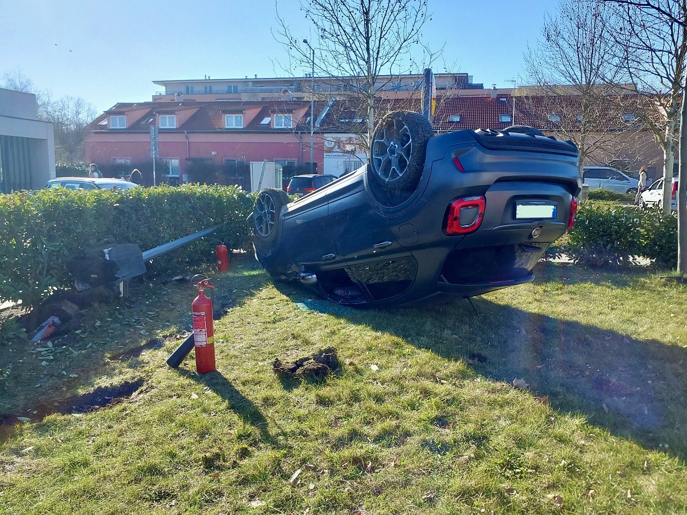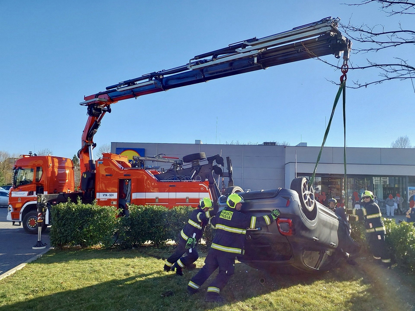 Vzhledem k tomu, že bylo nutné otočit zpět na kola osobní automobil, vyžádal si velitel zásahu na místo vyprošťovací automobil s jehož pomocí hasiči vozidlo otočili zpět na kola a odtáhli ho z travnaté plochy zpět na komunikaci.