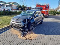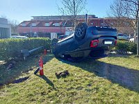 Osobní vozidlo skončilo po nehodě na střeše, o dvě zraněné osoby se postarala zdravotnická záchranná služba