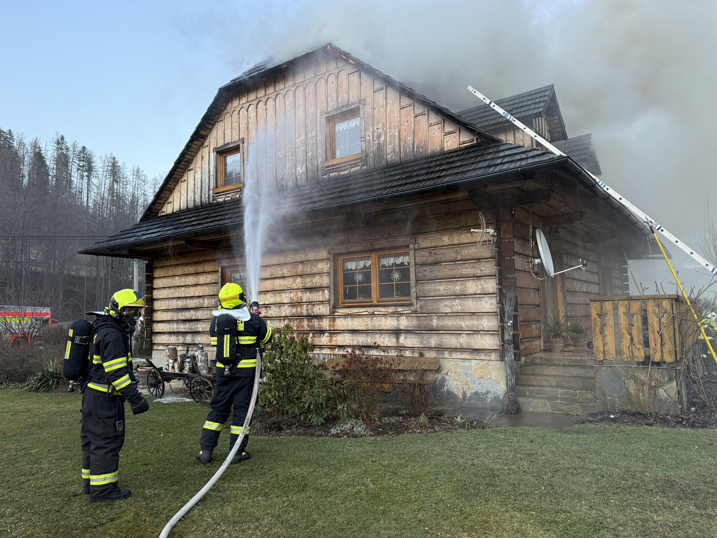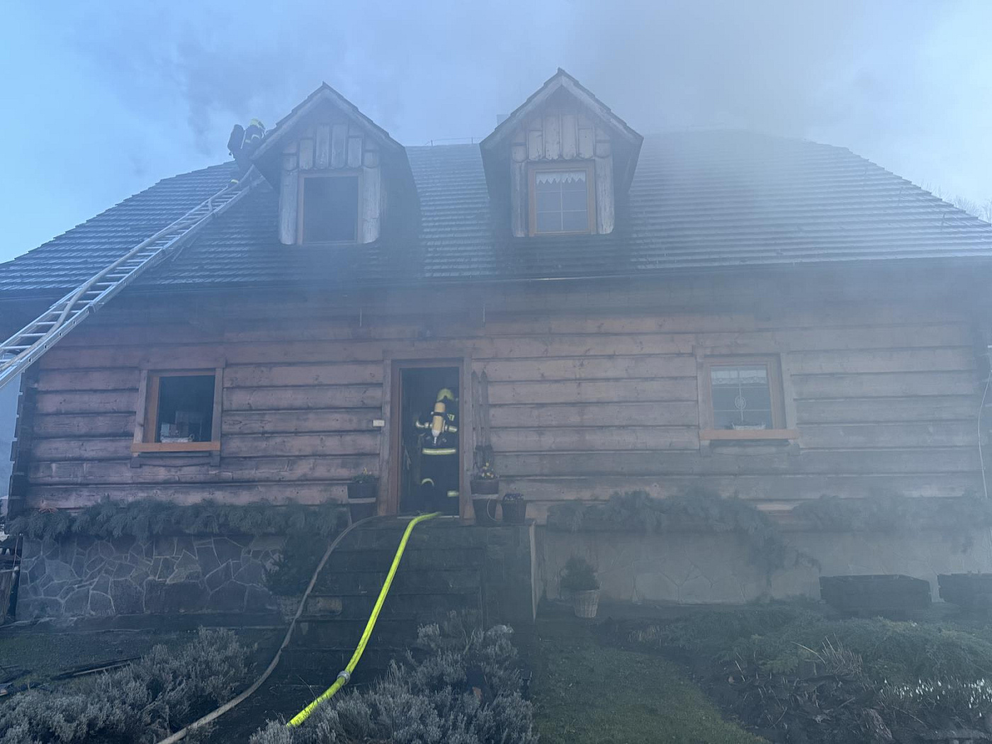 Hustý, černý kouř valící se ze střechy a podkroví domu byl viditelný již při příjezdu jednotek na místo události. Na likvidaci požáru nasadili hasiči okamžitě pět vodních proudů, které byly vedeny jak z vnitřní, tak z vnější strany domu. Během zásahu museli hasiči také rozebrat střešní krytinu a hledat skrytá ohniska požáru.