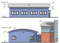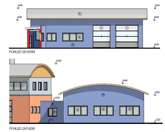 Přístavba se střechou válcového tvaru bude jednopodlažní, na stávající budovu se napojí spojovacím krčkem. Vznikne v ní garáž pro dvě vozidla, dílny, sklad nebo plnírna tlakových lahví.