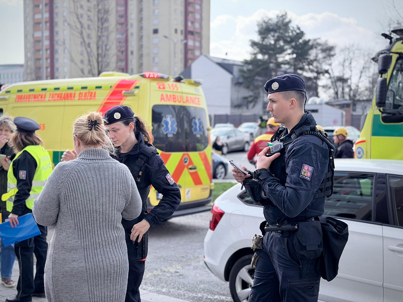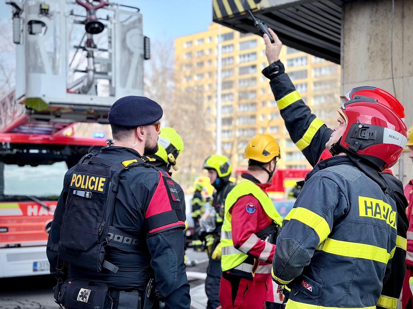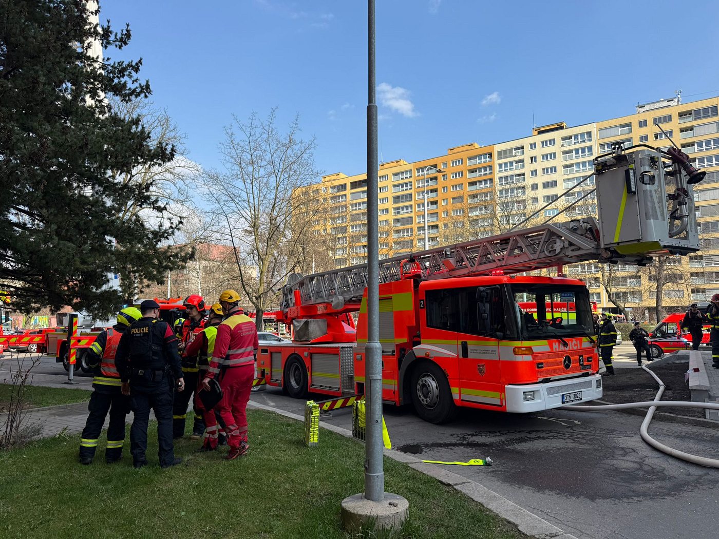 Na místě zasahují všechny složky IZS, operační středisko hasičů vyslalo šest jednotek a třináct kusů techniky. Velitel zásahu povolal do akce také bezpilotní letoun. Záchranáři vyslali vozidlo pro mimořádné události.