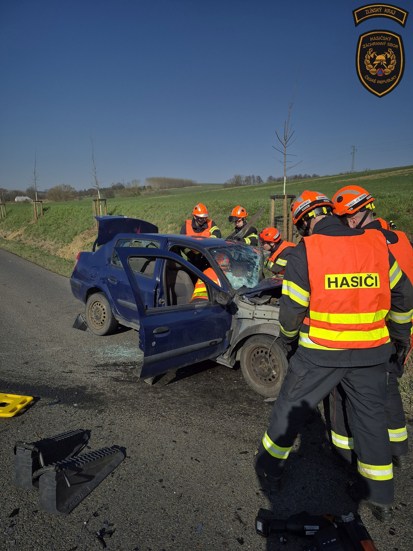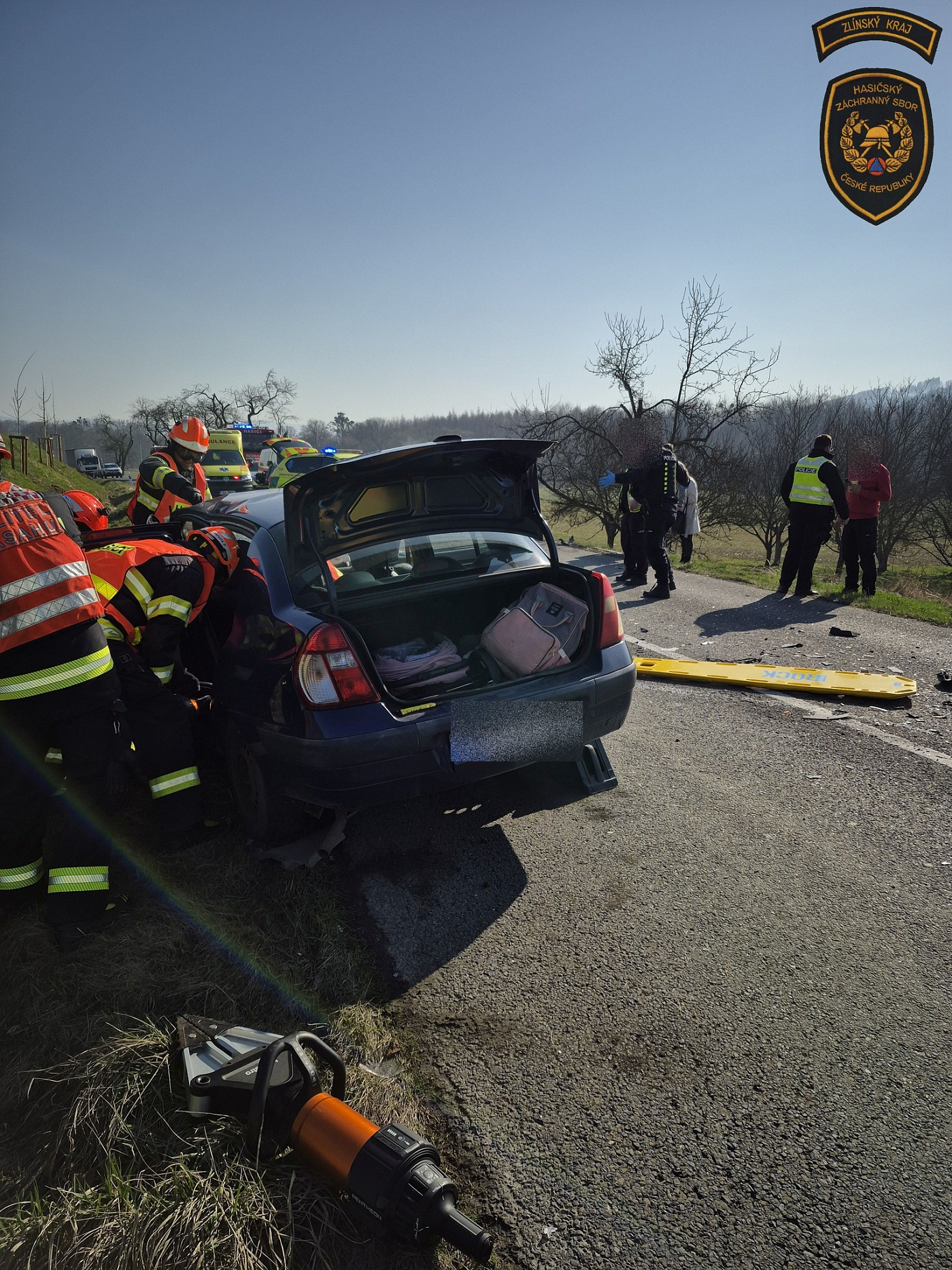 Po příjezdu hasičů řidiči dodávky a jednoho z osobních automobilů, které skončilo mimo vozovku, již byli mimo svá vozidla. Oba vyvázli bez zranění. Ve třetím havarovaném voze však zůstala zaklíněná řidička, která cestovala se dvěma malými dětmi. Ty už byly v době příjezdu hasičů v péči posádky zdravotnické záchranné služby.