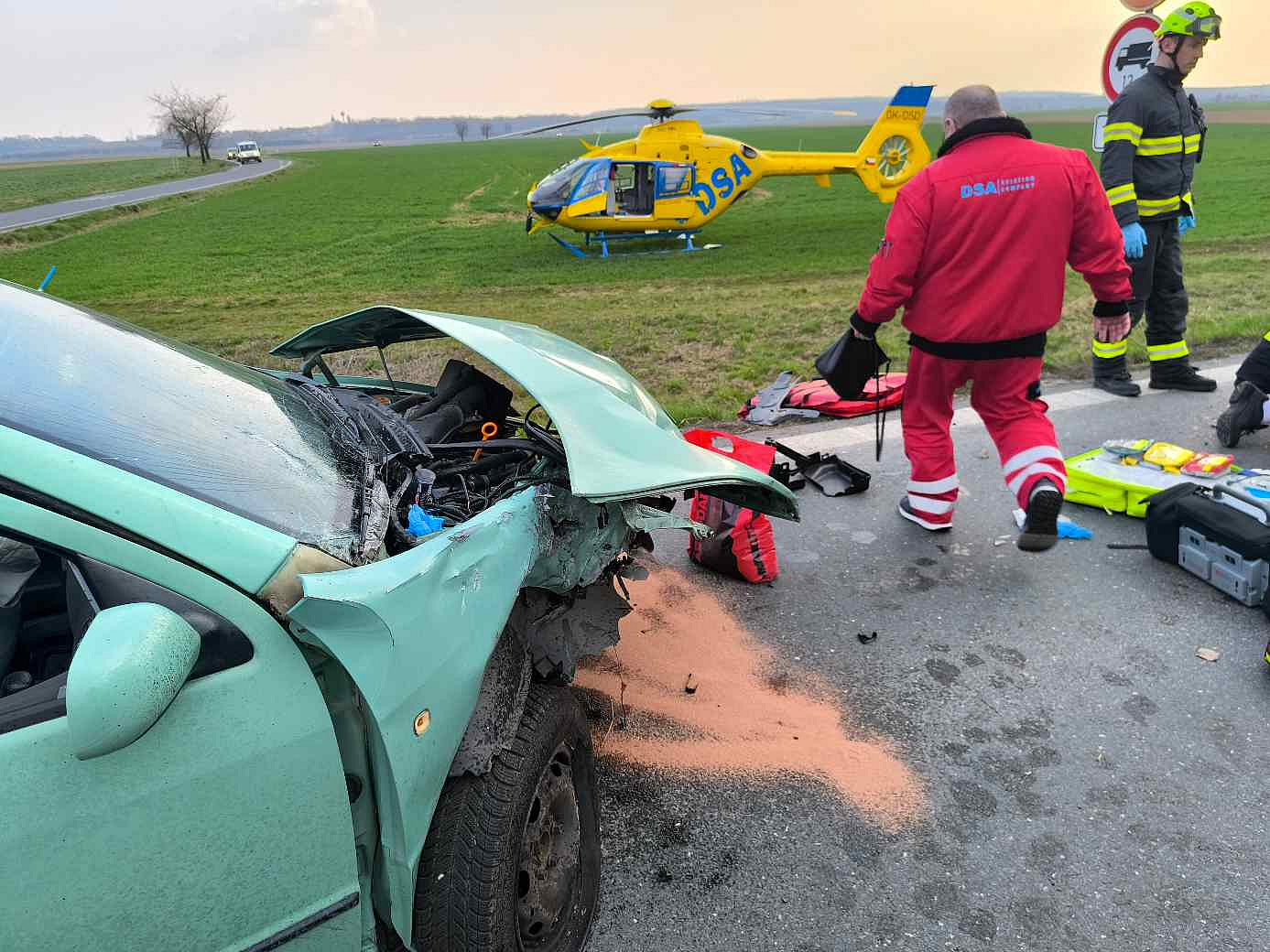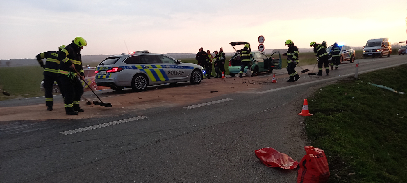 Na silnici II/611 u odbočky na Kosičky zasahovaly složky IZS u vážné dopravné nehody dvou osobních vozidel
