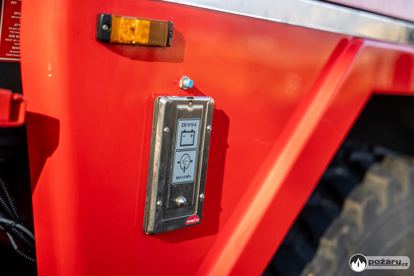 - Klimatická odolnost: Vozidlo má automatickou temperaci vodní nádrže i prostoru čerpadla pro zásahy v silných mrazech.