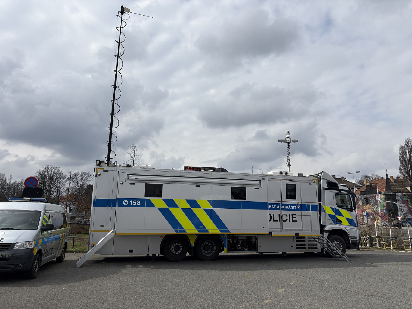 Policie ČR nasadila do akce několik desítky policistů. Nechybí pořádková jednotka ani policisté na koních.