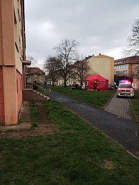 Únik plynu při výkopových pracích řeší jednotky HZS ULK HS Klášterec nad Ohří a JSDHO Kadaň v Kadani. Detektory HZS nenaměřily nebezpečné koncentrace plynu. Z preventivních důvodů byla nařízena evakuace 17 osob. Na místo povolán technik GasNet. Hasiči z důvodu nepříznivého počasí postavili pro evakuované osoby stan.