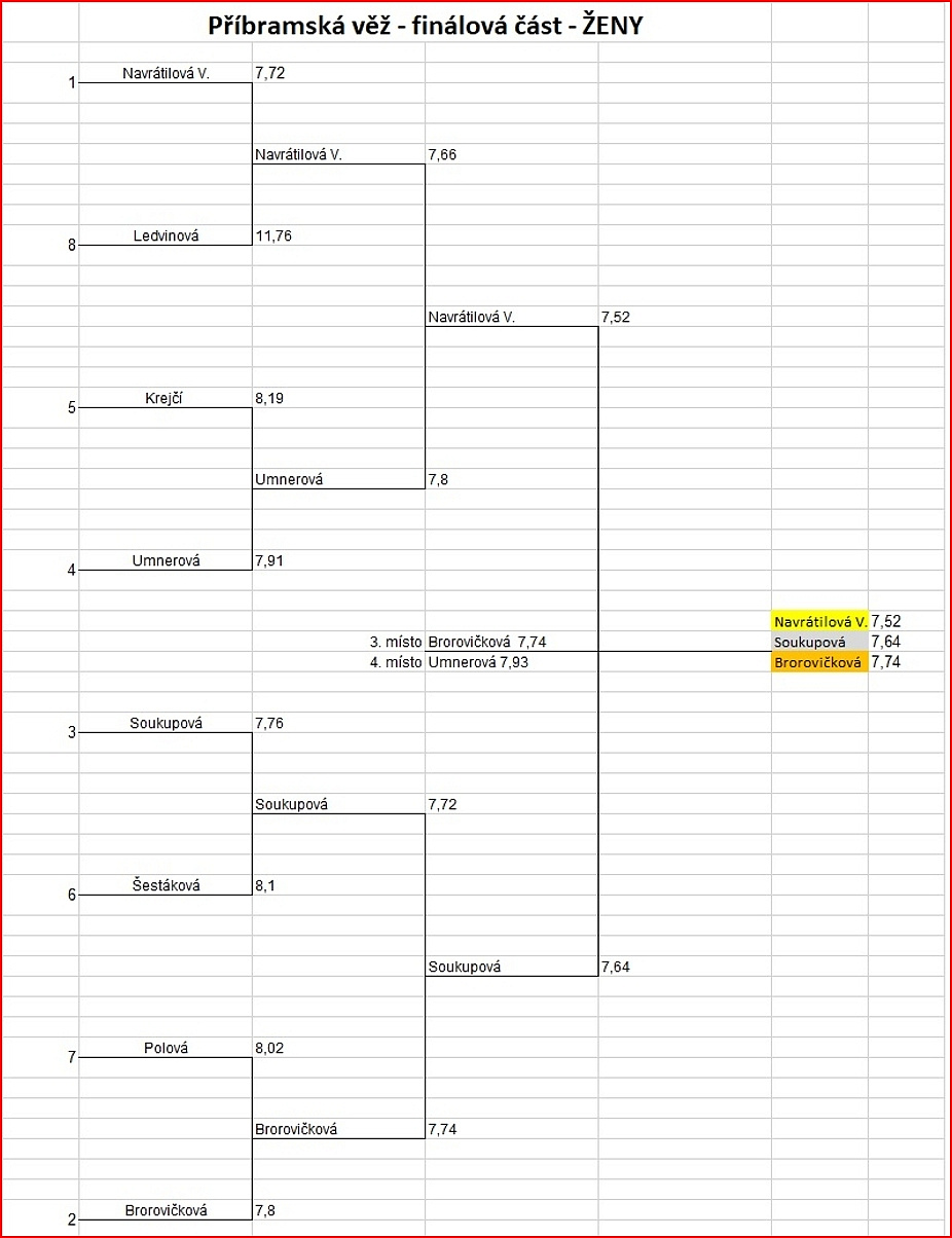 Mezi ženami zvítězila Veronika Navrátilová z SDH Kojetice. Navíc časem z finálového pokusu 7,52 sekundy zároveň předvedla nejlepší ženský výkon dne. Ve finálovém rozběhu porazila Kamilu Soukupovou z SDH Horní Cerekev, která se tak mohla těšit ze stříbra. Na třetím místě skončila Kateřina Borovičková z SDH Morkovice.