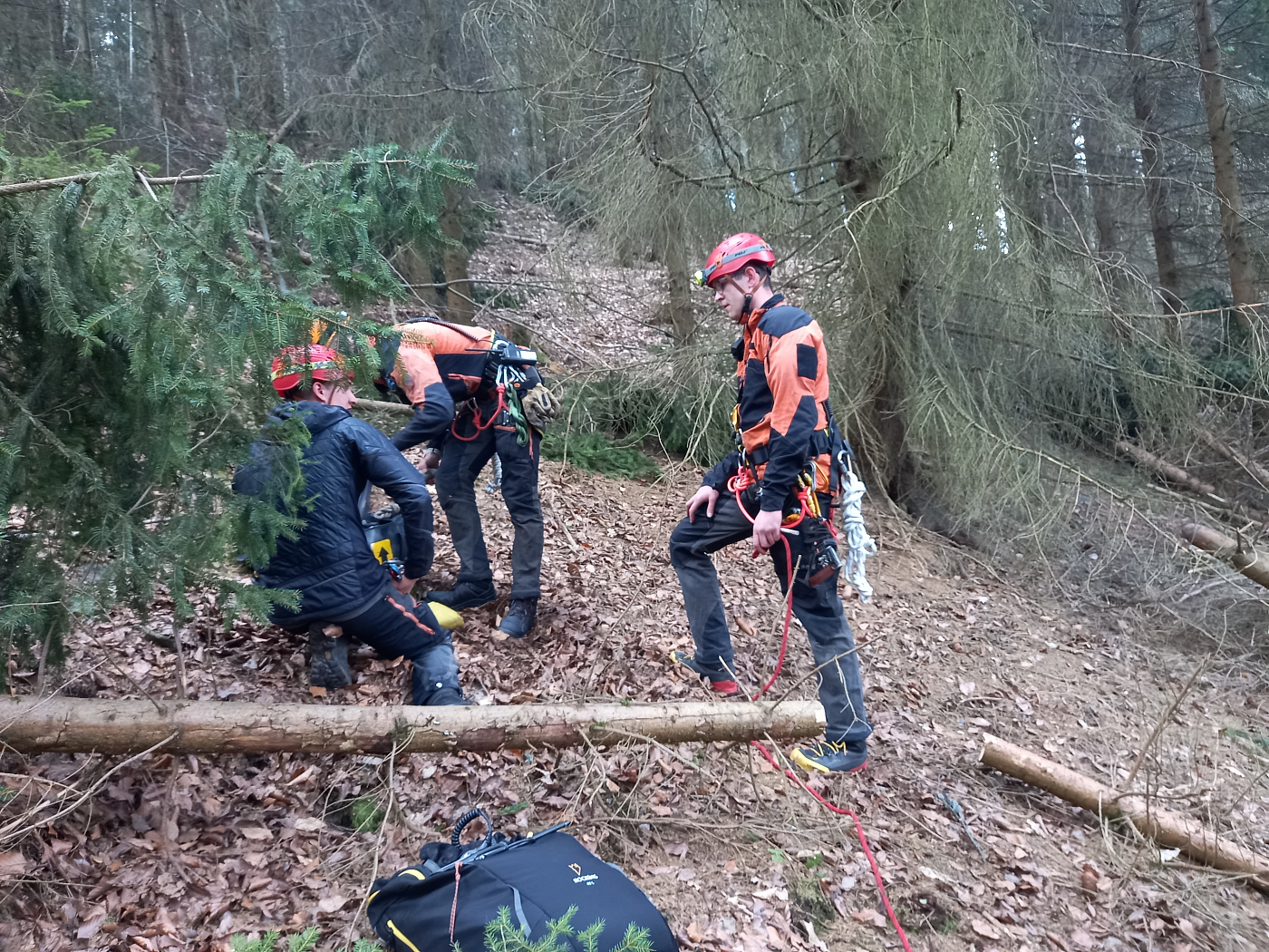 V Třebihošti na Trutnovsku zachraňují profesionální hasiči ze stanic Trutnov a Dvůr Králové nad Labem společně s jednotkou SDH obce Miletín paraglidistu, který uvízl na stromě. Hasiči bezpečně osobu spustili na zem. Zásah byl náročný i kvůli nutnosti prořezávání větví.