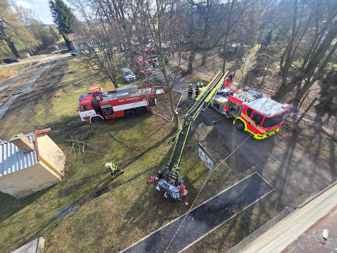 Devět jednotek likvidovalo požár opuštěné nádražní budovy na Rakovnicku