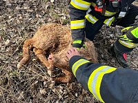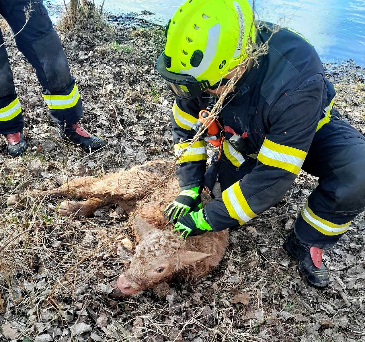 Hasiči v Ústí nad Labem zachránili novorozené tele z bažiny u Habrovického rybníka