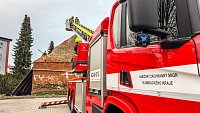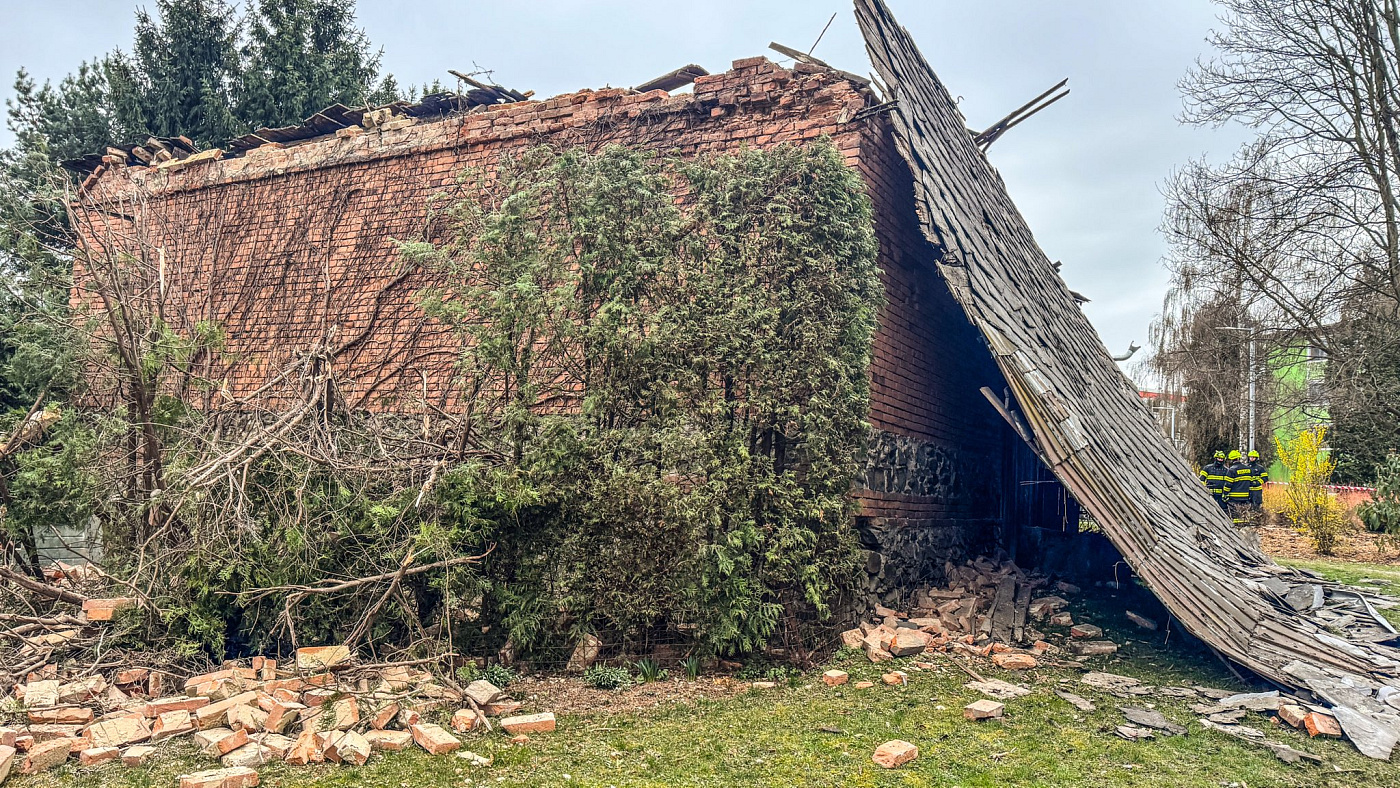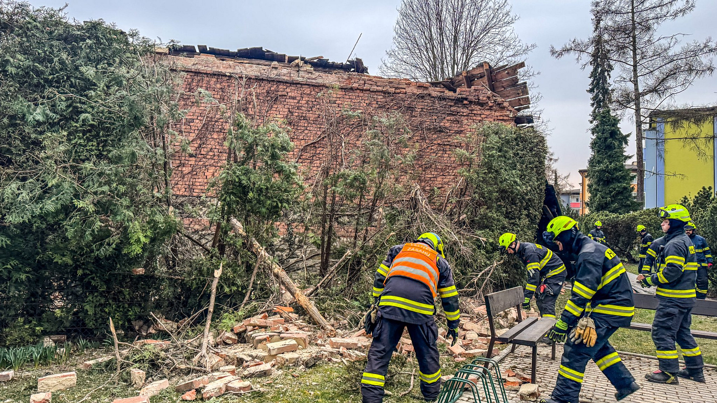 Jednotky profesionálních a dobrovolných hasičů zasahují na sídlišti v Lošticích, kde došlo k destrukci neobydleného objektu. Pád zdi a části střechy se naštěstí obešel bez zranění.