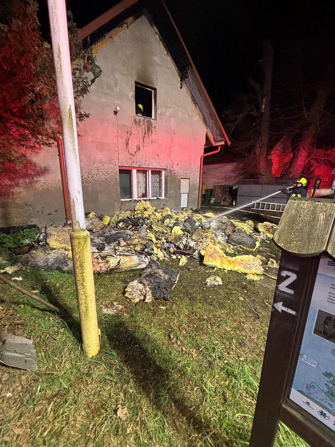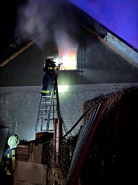 Pět jednotek hasičů bojovalo s nočním požárem střechy v obci Kozly na Mělnicku. Nasazen byl i dron