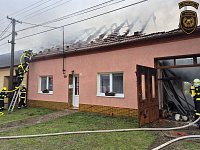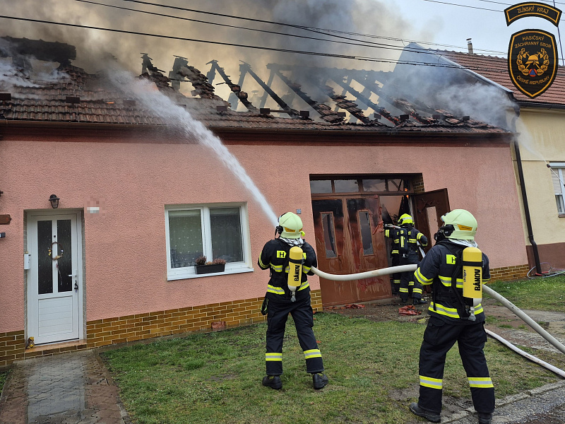 Šest jednotek hasičů zasahovalo v obci Suchá Loz na Uherskohradišťsku u požáru střechy a garáže rodinného domu