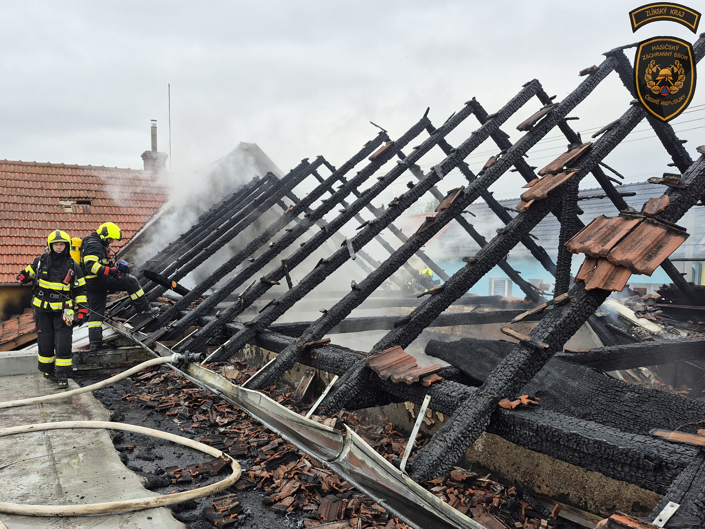Šest jednotek hasičů zasahovalo v obci Suchá Loz na Uherskohradišťsku u požáru střechy a garáže rodinného domu