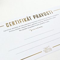Aby byl dojem z dárku dokonalý je přilba uložena v luxusní bílé krabici s raženým logem a modrým saténem uvnitř. Součástí balení je certifikát pravosti s prostorem pro vaše osobní věnování.