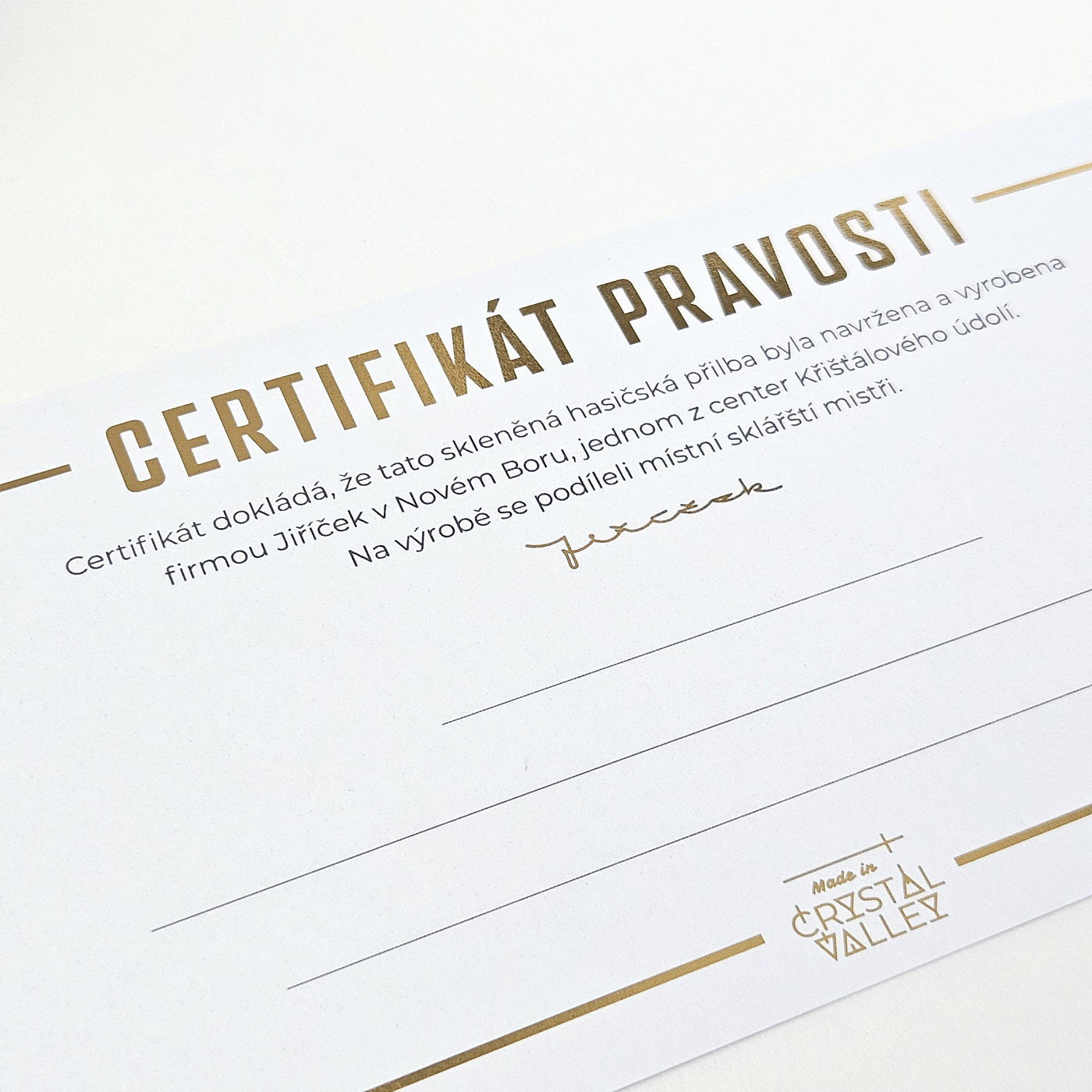 Česká tradice ručního sklářství, zapsaná na seznamu UNESCO, je zde stále živá. Každá přilba je ručně foukaná, ručně broušená, ručně pískovaná – originál který neexistuje jinde na světě a při 100% ruční výrobě prochází rukama několika mistrů: