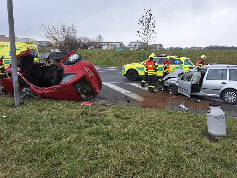 Zraněného řidiče vyprostili profesionální hasiči z havarovaného osobního vozidla na kruhovém objezdu u Globusu v Olomouci. Po střetu s jiným vozem zůstalo jedno z vozidel na boku. V něm byl zaklíněn muž v bezvědomí. Zásah proto musel proběhnout rychle, hasiči odstřihli hydraulickými nástroji oboje dveře na pravé straně.