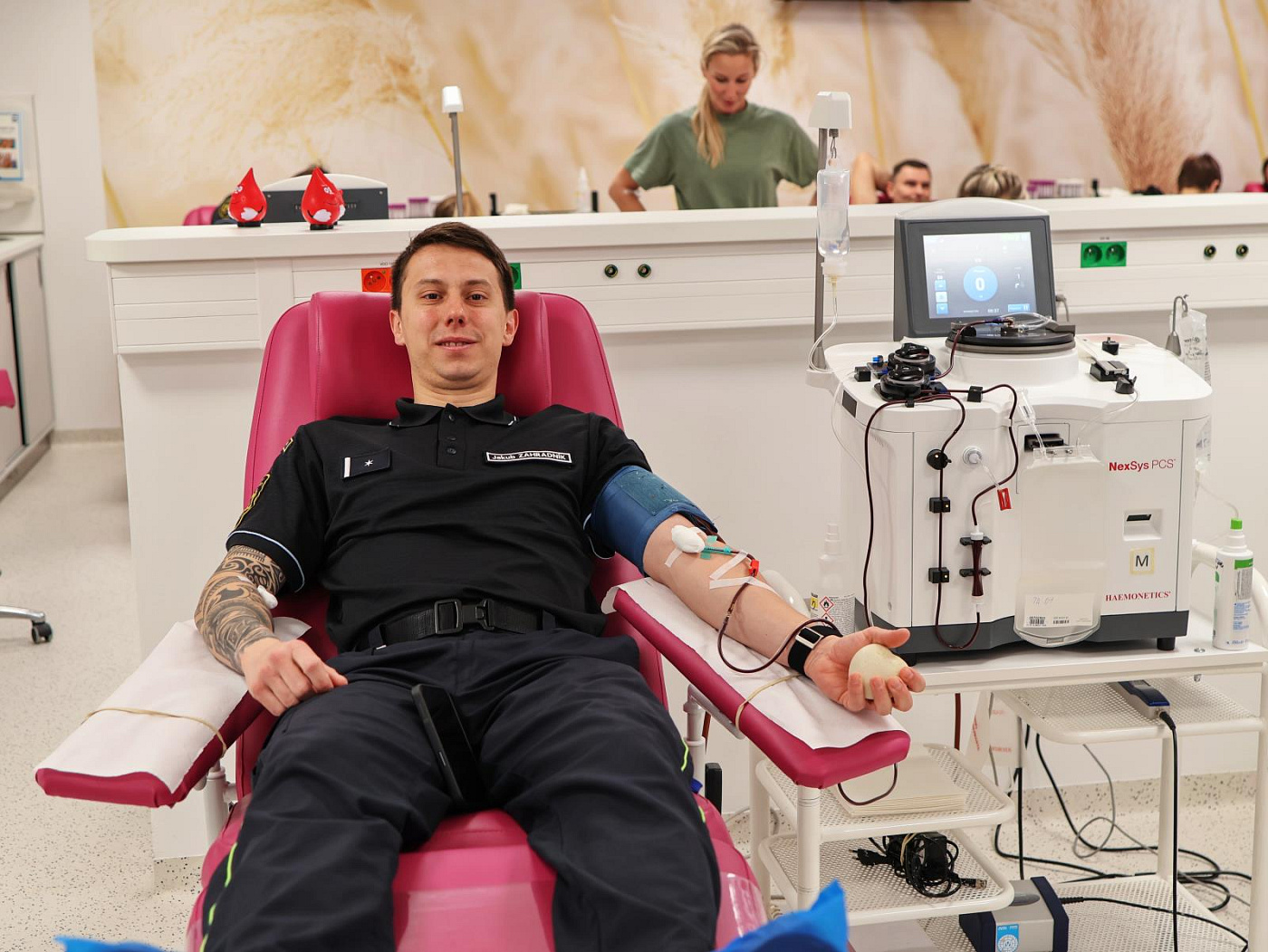 Myšlenka akce nazvané Pomoc2 vznikla v souvislosti s rozsáhlou rekonstrukcí transfuzky, kdy se odebírala krev v provizorních podmínkách. Letos už se uniformované složky sešly v modernizovaných prostorách, ovšem personál zůstal stejně milý jako vždy.