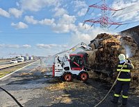 K požáru přívěsu plného sena byli krátce po půl třetí povoláni profesionální hasiči z Kralup nad Vltavou a Mělníka společně s podnikovými hasiči Správy železnic Kralupy nad Vltavou a dobrovolnou jednotkou Veltrusy na 15. kilometr dálnice D8 ve směru na Prahu.