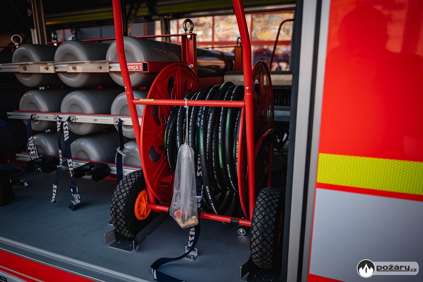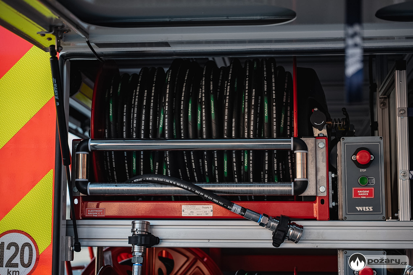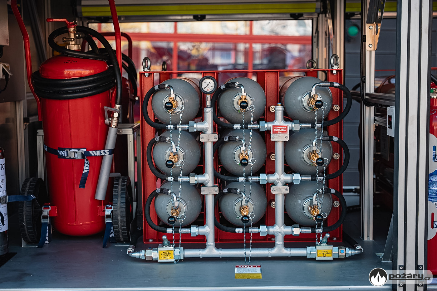 Výhodou celého řešení je fakt, že hasit je možné z obou navijáků současně. Sběrné potrubí navíc umožňuje praktické křížové propojení. Pokud tak dojde k vyprázdnění například levé technologie, může obsluha levý naviják pomocí snadno přístupných ventilů přepojit a zásobovat jej plynem z pravé části.