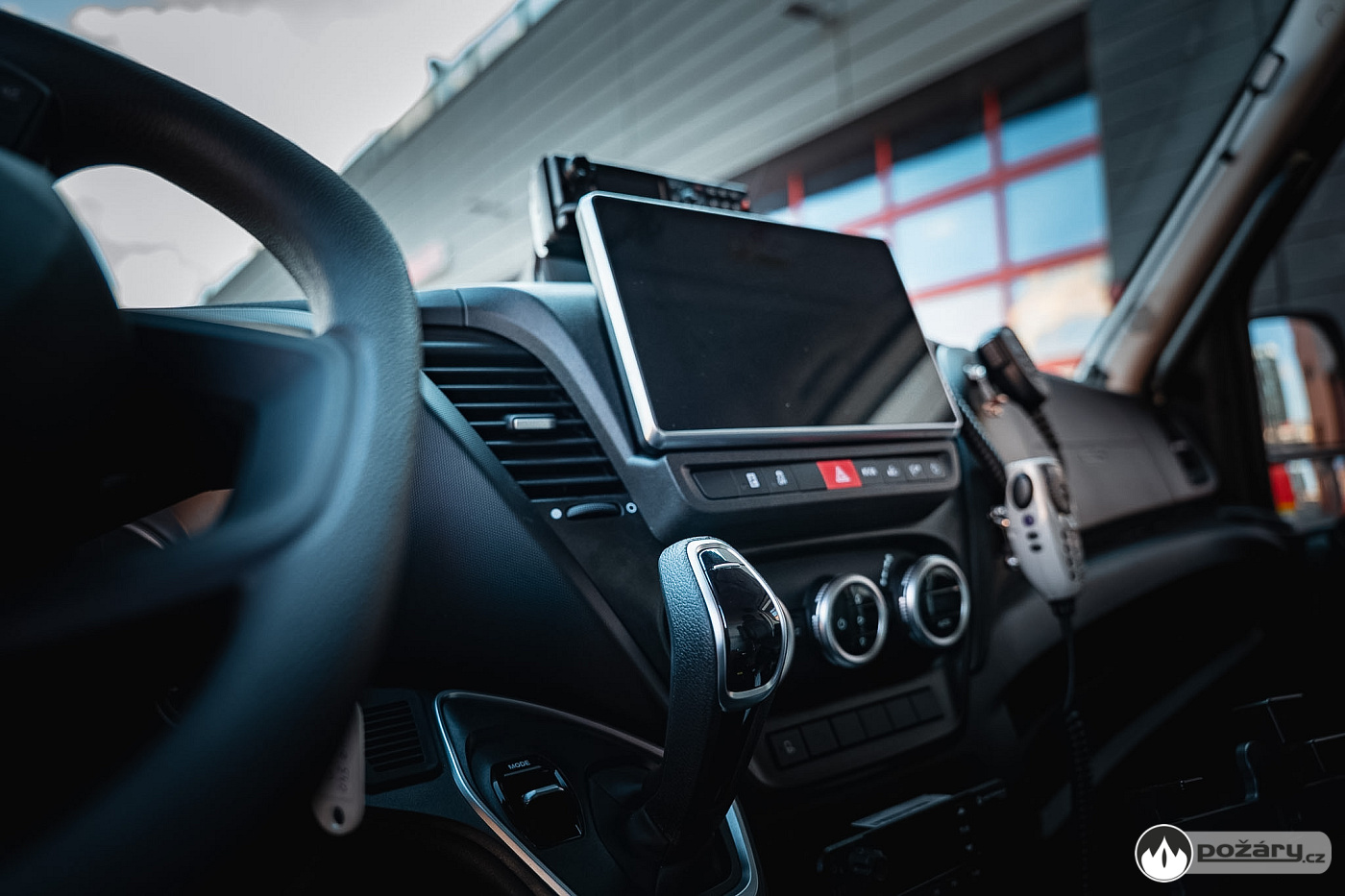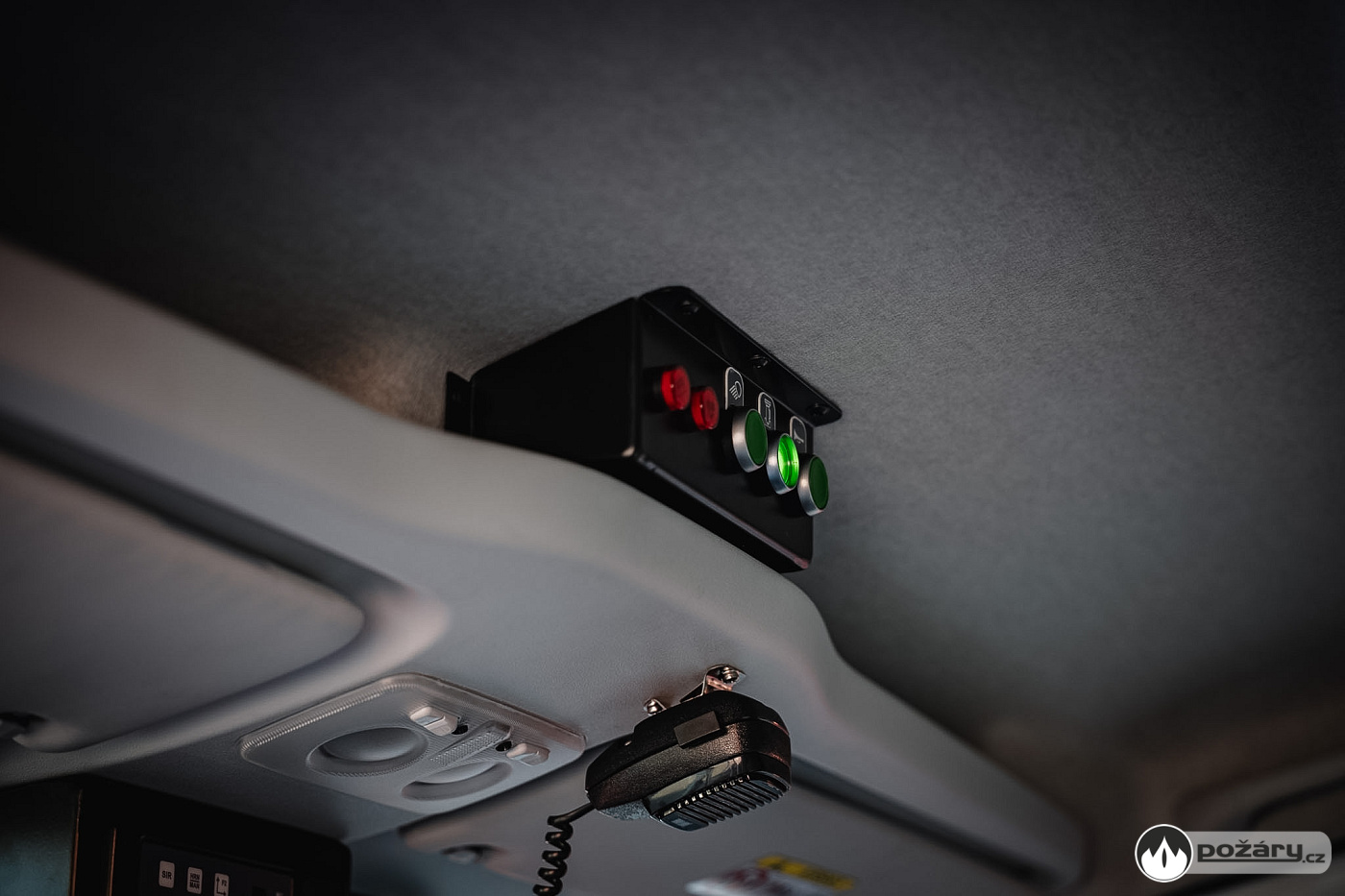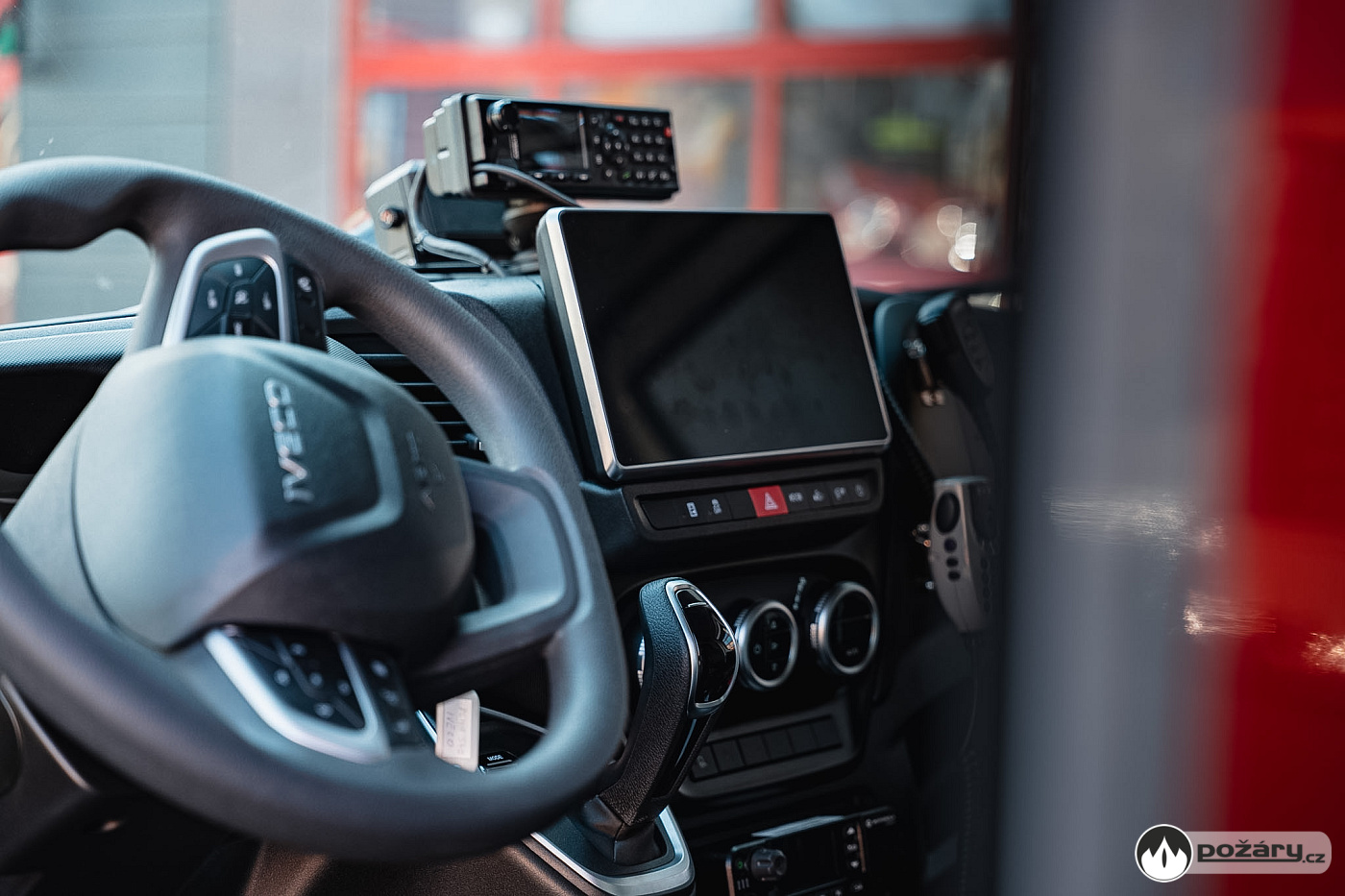 V dosahu velitele vozu se nachází 8" tablet v nabíjecím držáku, LED osvětlení na ohebném rameni určené pro čtení dokumentů a napájecí automobilové zásuvky.