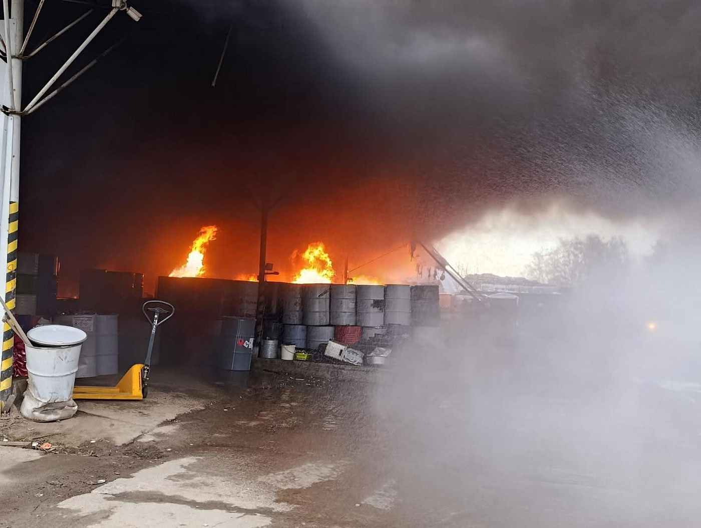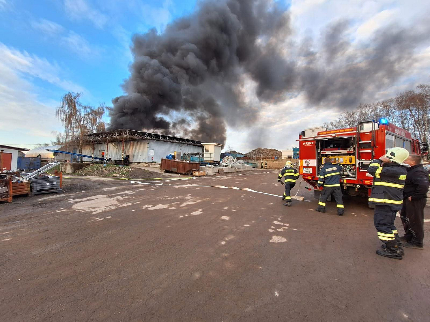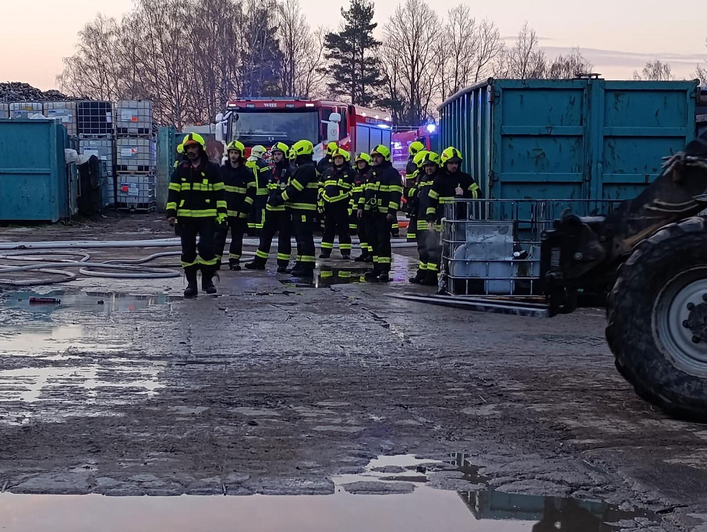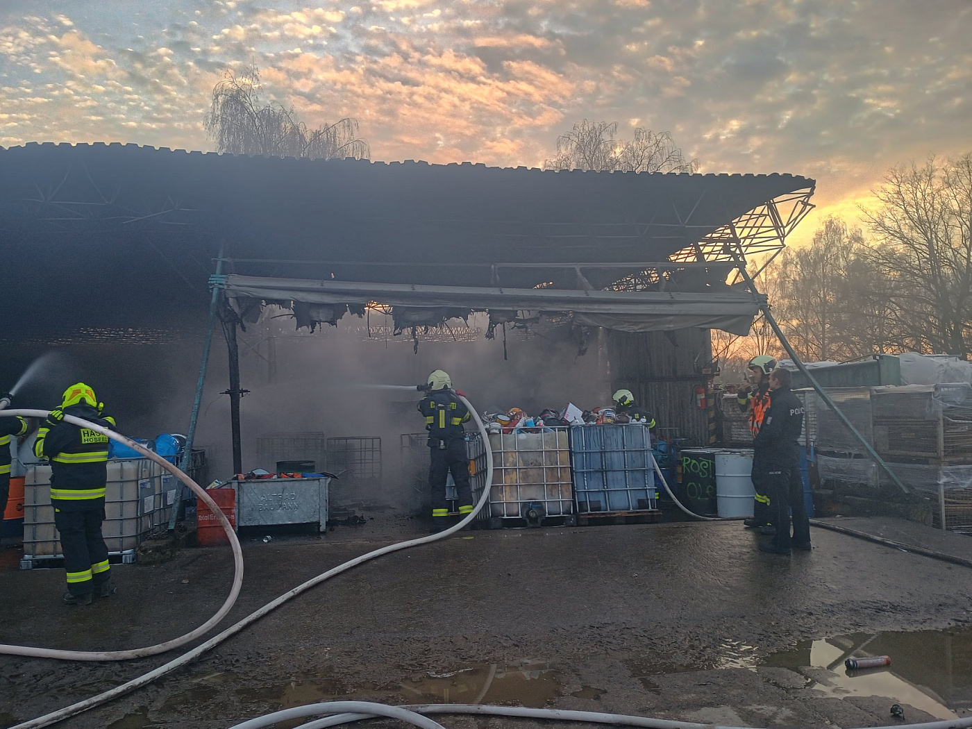 Vzhledem ke zvukům výbuchů a vysokým plamenům dle nahlašujících svědků na místo vyrazilo několik jednotek a operační důstojní tak vyhlásil II. stupeň požárního poplachu. Po příjezdu na místo a provedeném průzkumu se ukázalo, že v hale hoří barvy, palety a plastový odpad. Požár se hasičům podařilo rychle zlikvidovat.