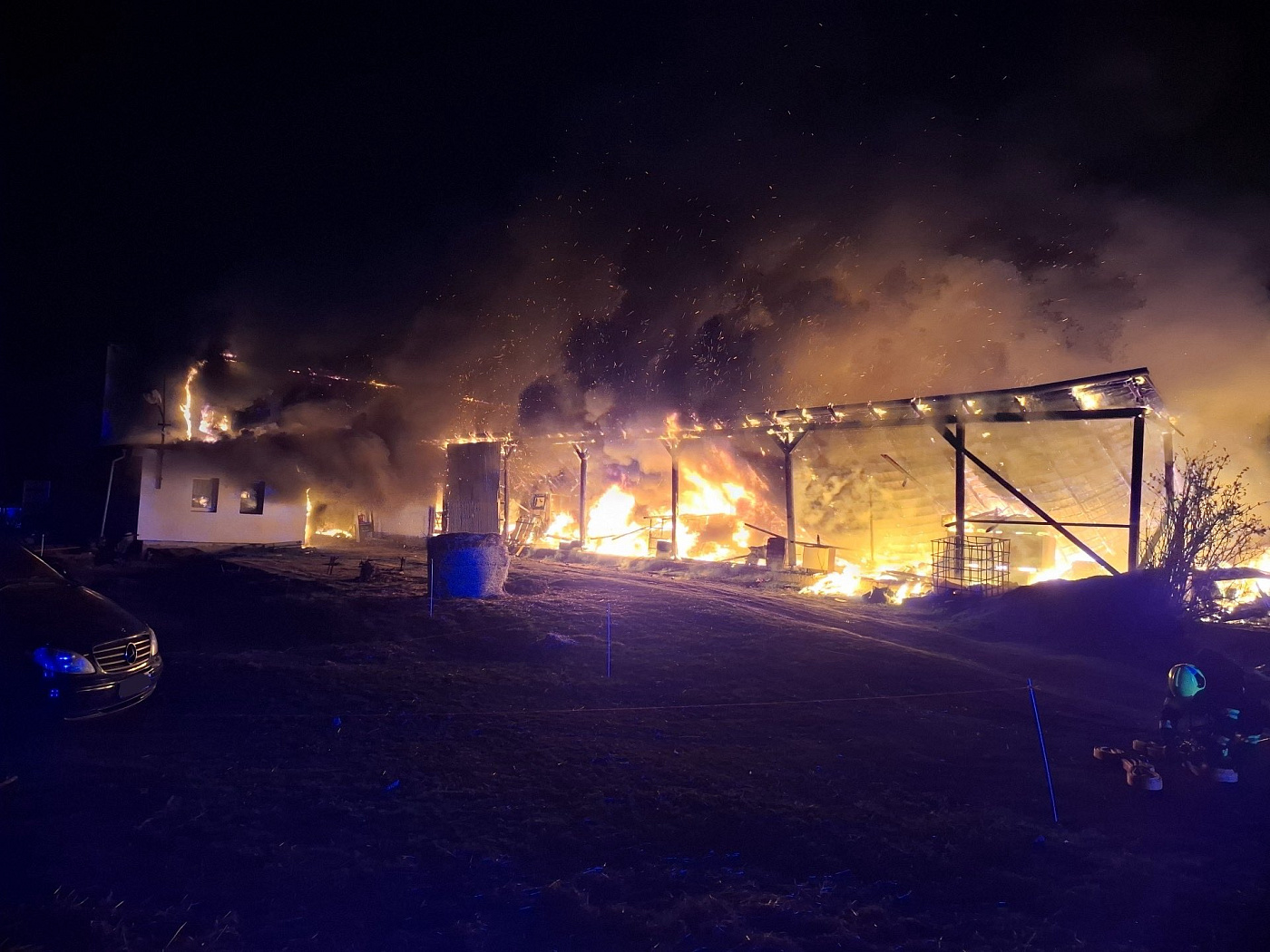 Šest jednotek hasičů nyní zasahuje v Pobučí, místní části Jestřebí na Šumpersku. Likvidují požár stodoly a části rodinného domu v zemědělském areálu. Útočnými proudy zabránili rozšíření ohně do obytných místností a dostali plameny pod kontrolu.