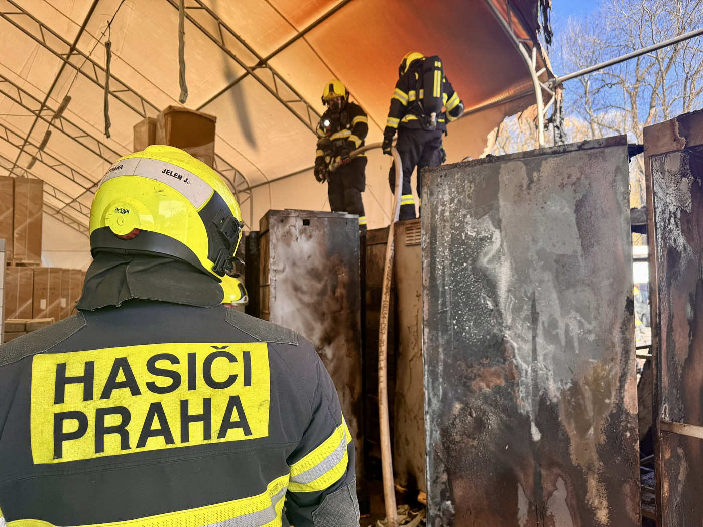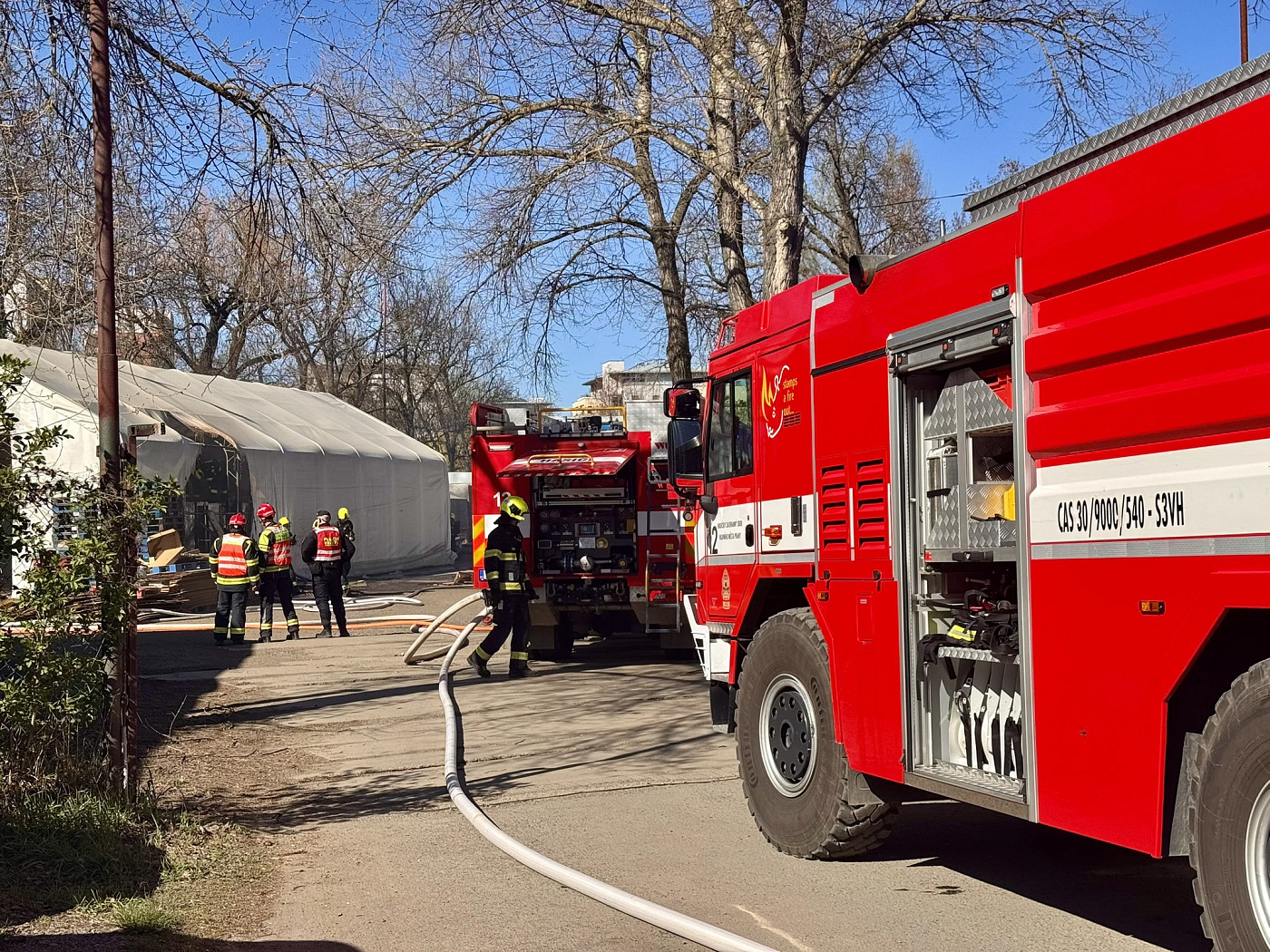 Pražští hasiči ze čtyř stanic zasahují v ulici Cukrovarská v Čakovicích u požáru části montované haly. Na uhašení byly nasazeny tři proudy vody, hasiči odvětrávají prostory a provádí dohašování skrytých ohnisek. Událost je bez zranění.