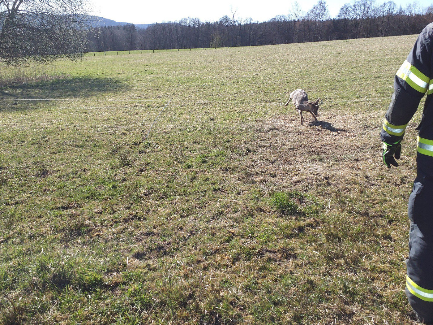 Hasiči ze stanice Králíky pomohli srnečkovi, který se zamotal parohy do elektrického ohradníku. K události byli hasiči přivoláni dnes krátce po půl čtvrté odpoledne. Po jejich příjezdu byl srneček během pár vteřin opět na svobodě.