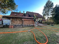 Krátce před osmnáctou hodinou vyjely čtyři jednotky hasičů k požáru rodinného domu v obci Mladé Buky. Plameny společně se silným kouřem vycházely ze střechy přístavku a garáže.