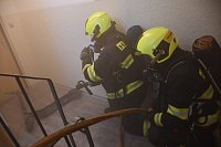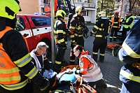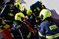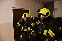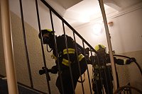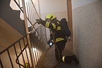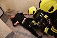 Námět byl rozšířen o smrtelné zranění osoby, která v panice vyskočila z okna. Zásahem bylo nutné uhasit požár, provést průzkum a následnou záchranu zraněných osob ohrožených na životě, jak vnitřní zásahovou cestou po schodišti, tak i ze střechy budovy pomocí automobilového žebříku. Pro záchranu byla připravena i seskoková matrace.