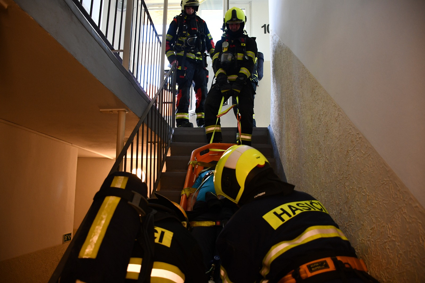 Námětem cvičení byl vznik požáru v bytové jednotce v 9. nadzemním podlaží při nabíjení elektrokoloběžky. Majitel bytu při pokusu o vyhození hořící elektrokoloběžky na chodbu bytového domu utrpěl popáleniny a zablokoval dveře z bytu v otevřené poloze, čímž došlo k rychlému rozvoji plamenů a kouře jak v bytové jednotce, tak ve společném schodišťovém prostoru. Nebezpečí otravy zplodinami hoření a riziko explozivního hoření baterie ohrožovaly větší počet osob i zasahující složky IZS.