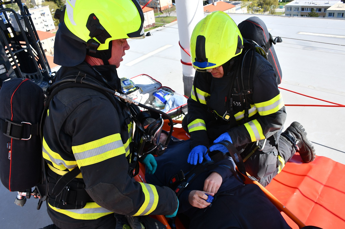 Ve středu 8. dubna 2026 od 10 do 12 hodin proběhlo v Berouně na adrese Branislavova 1418 taktické cvičení složek integrovaného záchranného systému s tématem společného zásahu při požáru výškové budovy s výskytem většího počtu zraněných a evakuovaných osob.