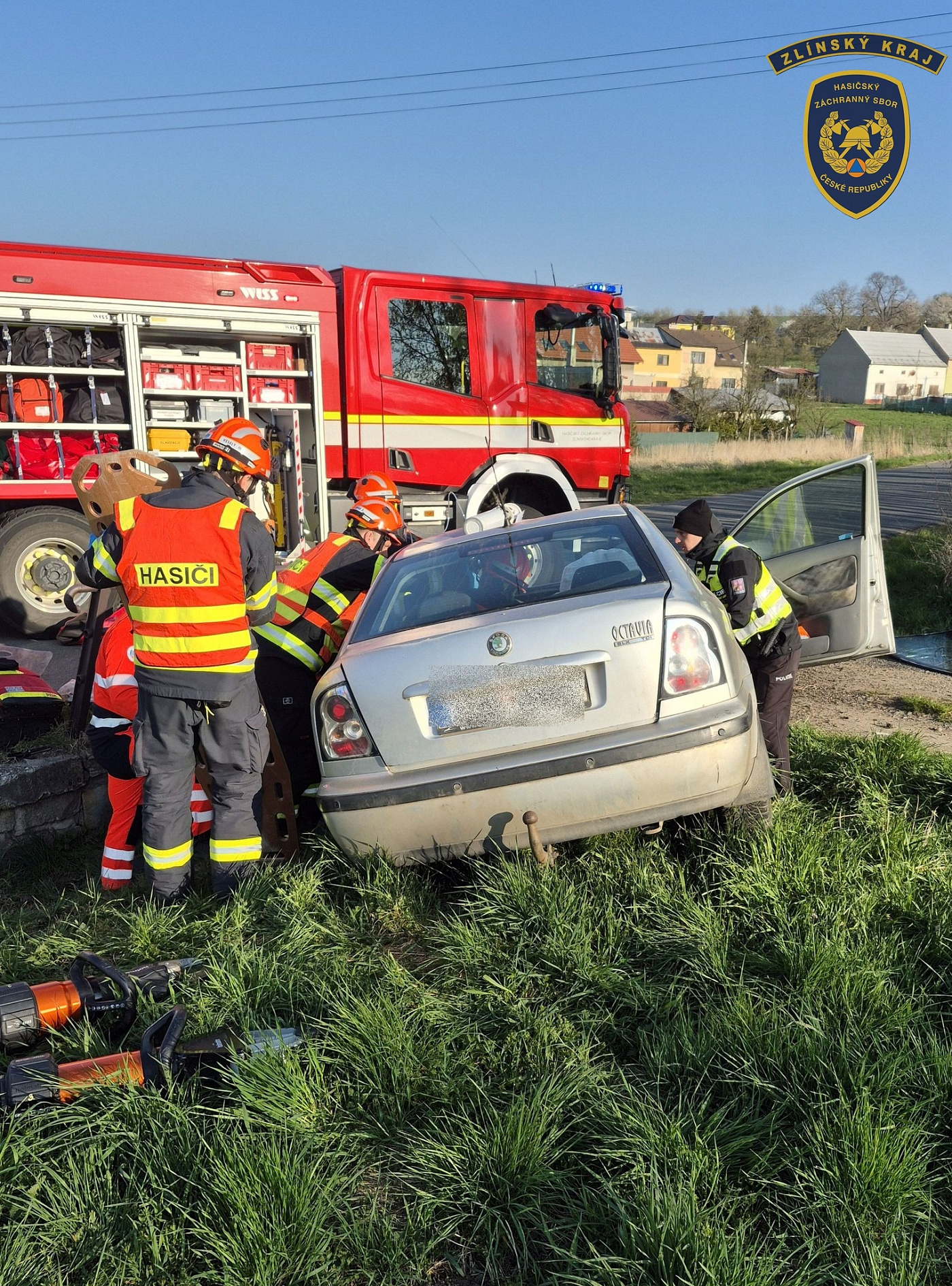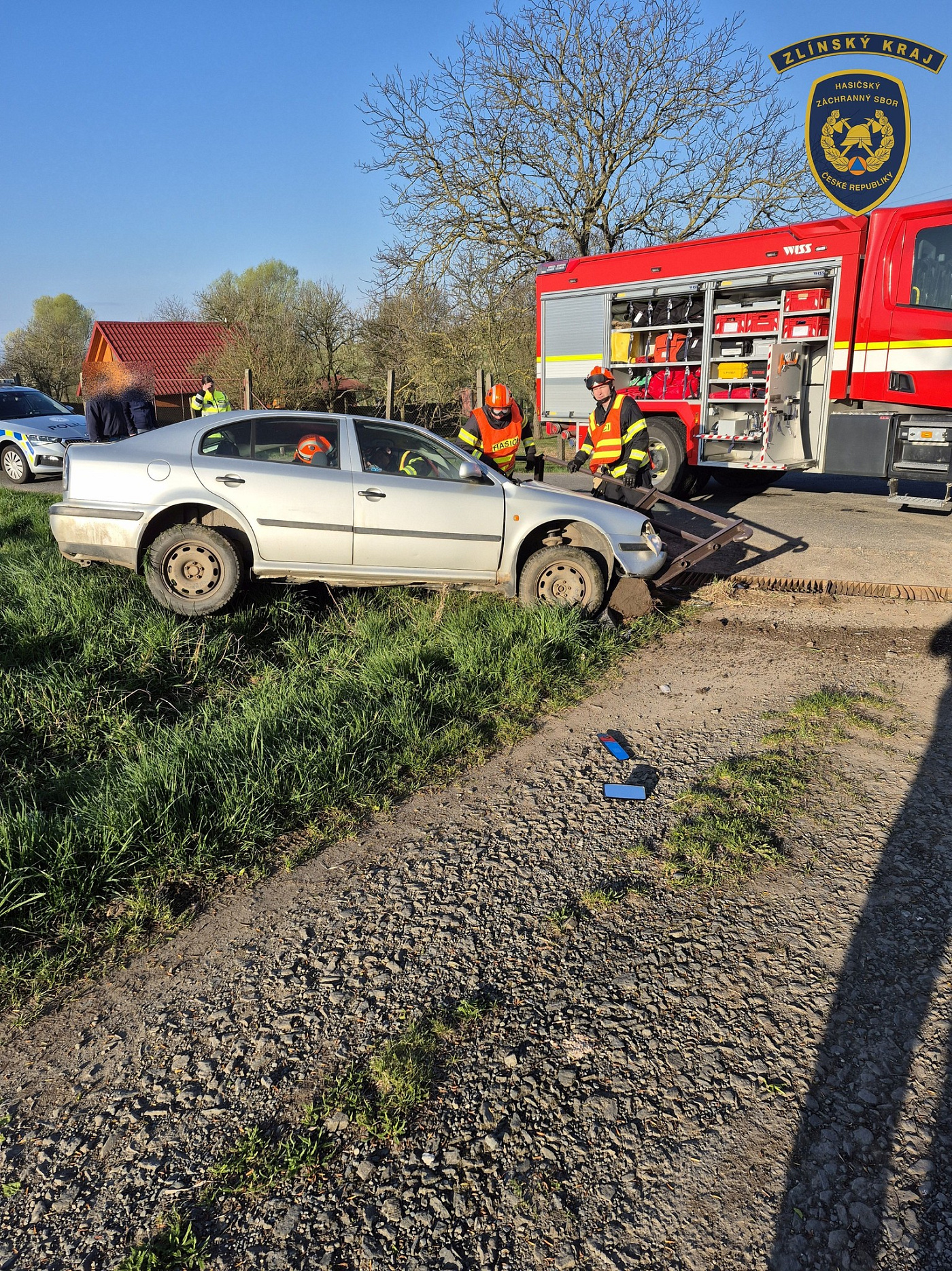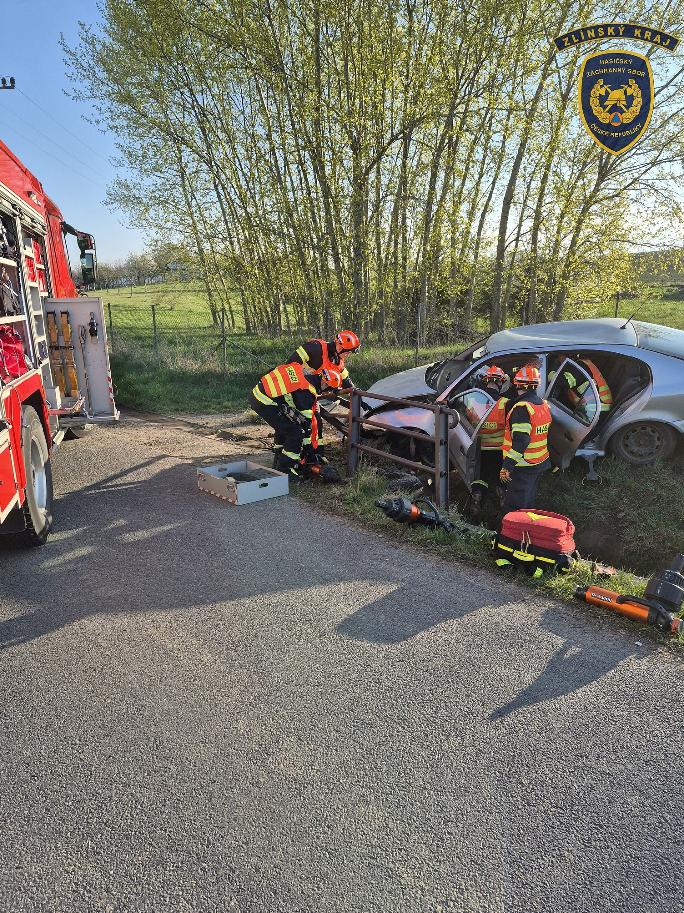 Profesionální jednotka ze stanice Holešov vyjížděla dnes v půl osmé ráno k dopravní nehodě osobního vozidla u obce Bořenovice na Holešovsku.