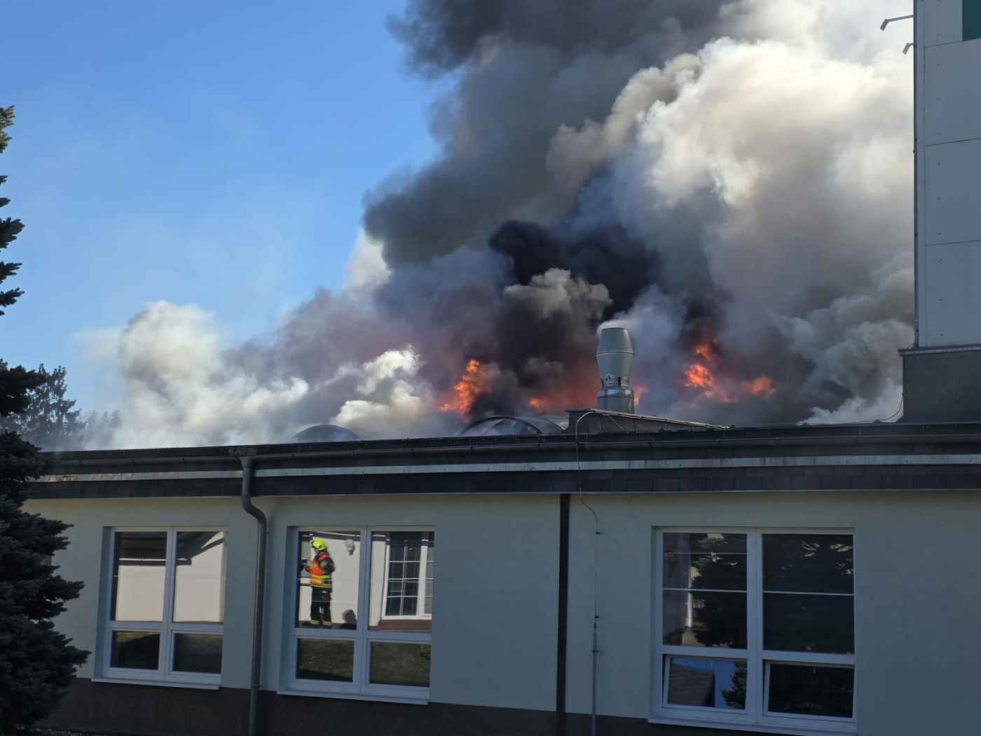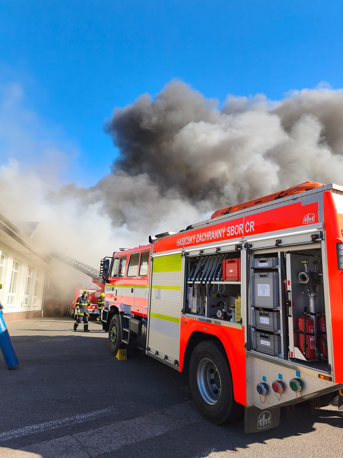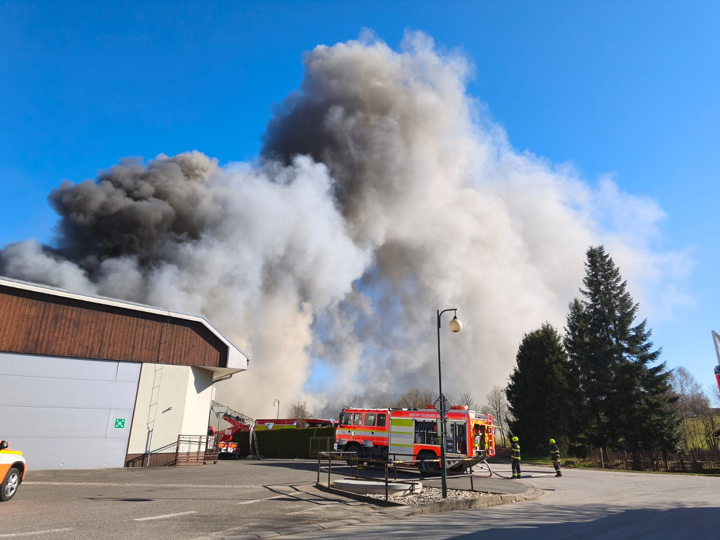 První hasičská jednotka byla na místě události a prováděla průzkum již dvě minuty před 16. hodinou, ještě předtím stihly budovu bezpečně opustit dvě desítky osob a nikdo nebyl zraněn. Požárem byla v tu chvíli zasažena část střechy haly.