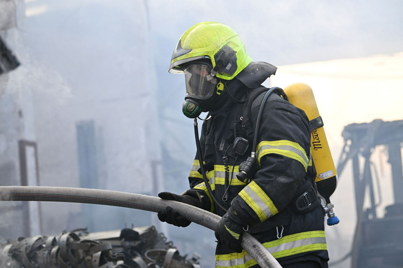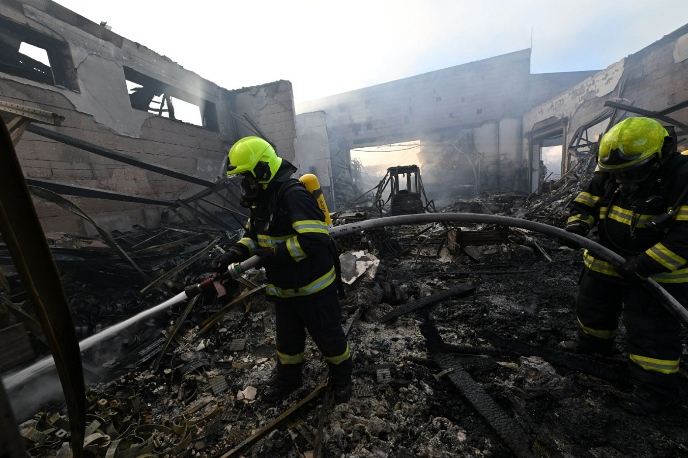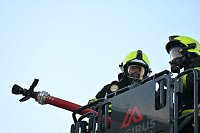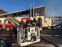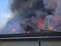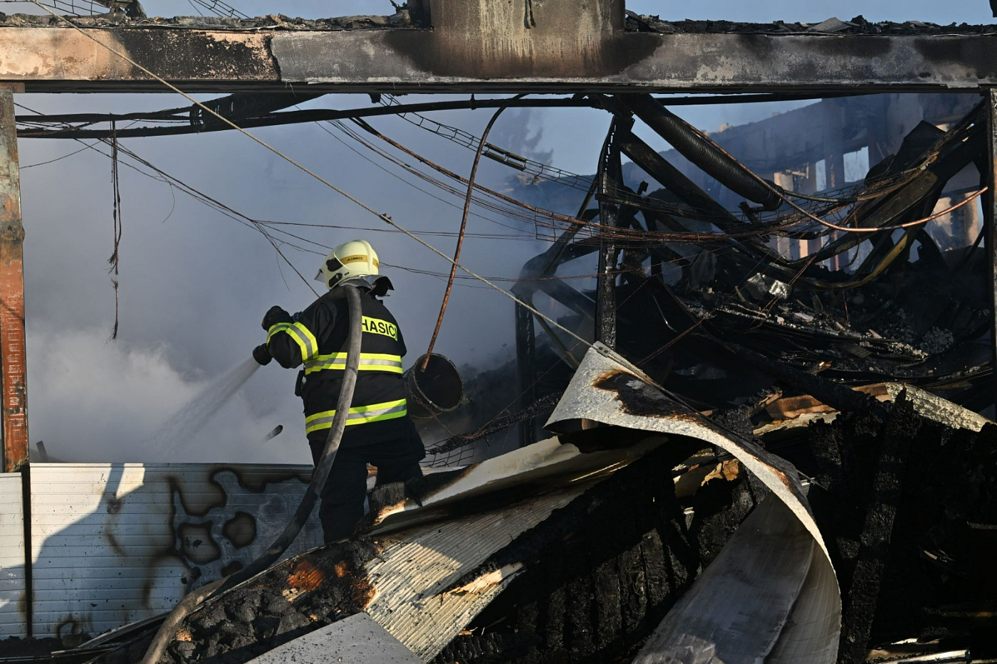Při zdolávání požáru bylo postupně nasazeno 15 vodních proudů, hašení probíhalo zvenku – z ustavené výškové techniky, ale částečně také zevnitř. Požár se stropní konstrukcí rozšířil na celou plochu haly a vlivem požáru došlo k propadení střešní konstrukce.